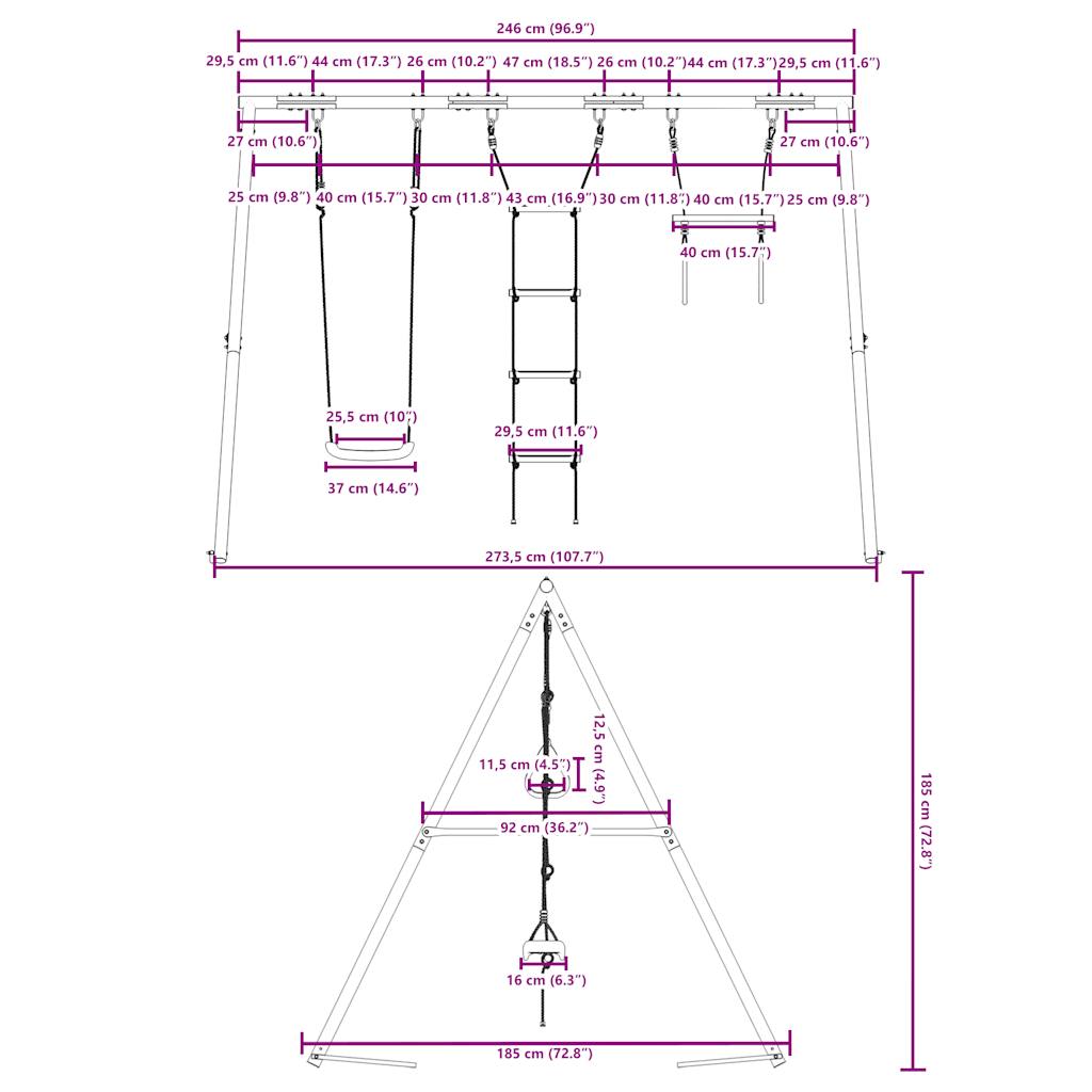 • Aplicații vaste: Acest cadru de leagăn poate fi plasat în diferite locații, cum ar fi în grădini, curți, pepiniere, locuri de joacă și multe altele.
