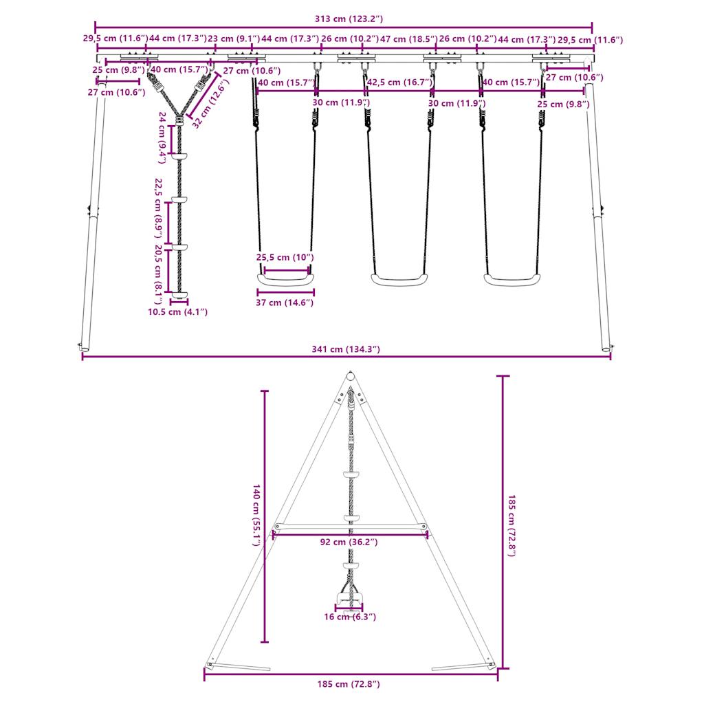 - Centru de activități distractive: Acest set de leagăn pentru copii oferă 2 opțiuni de joc diferite, și anume, trei leagăne și un legăn cu disc și funie. Astfel, copiii se pot legăna și se pot cățăra după pofta inimii.