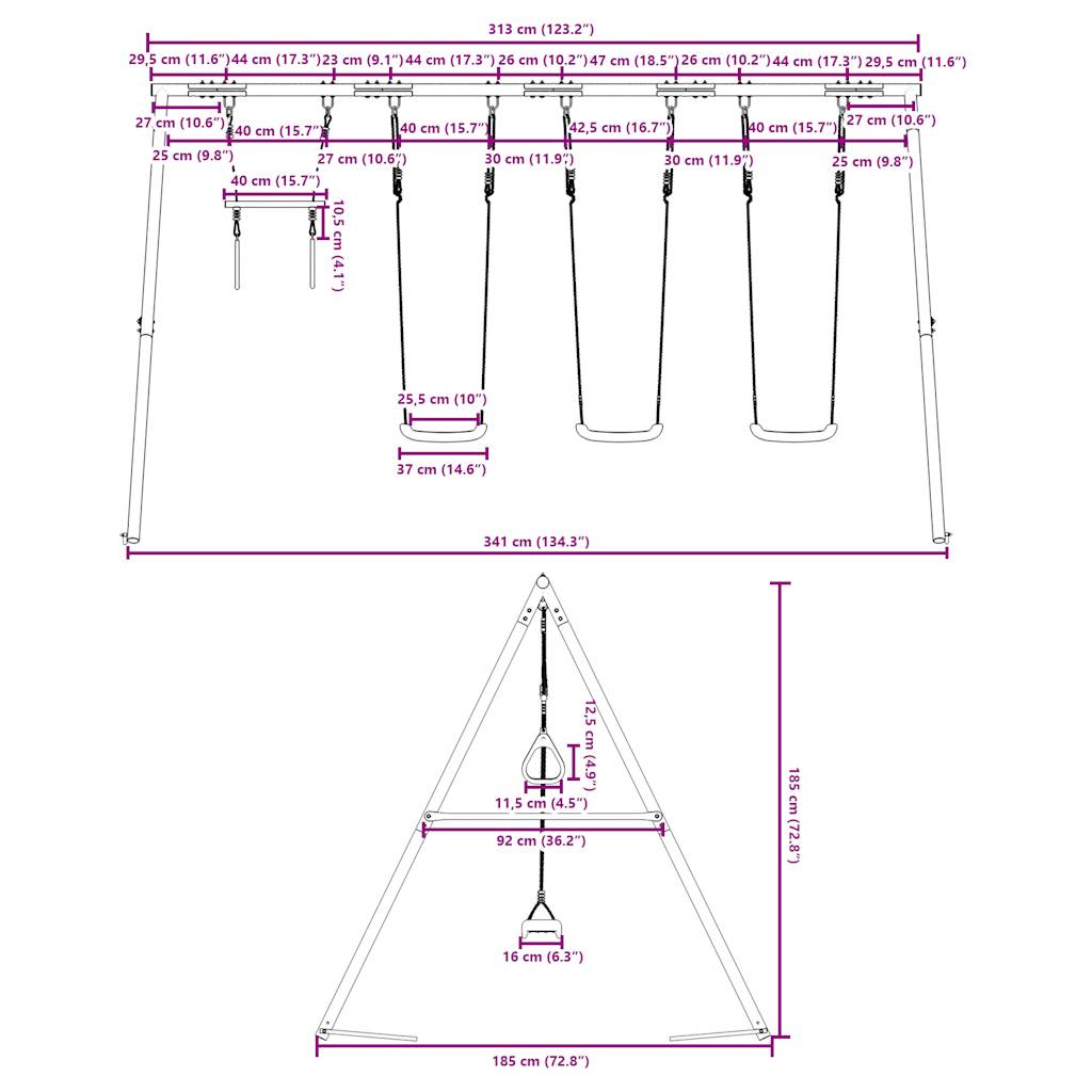 - Aplicații vaste: Acest cadru de leagăn poate fi plasat în diferite locații, cum ar fi în grădini, curți, pepiniere, locuri de joacă și multe altele.