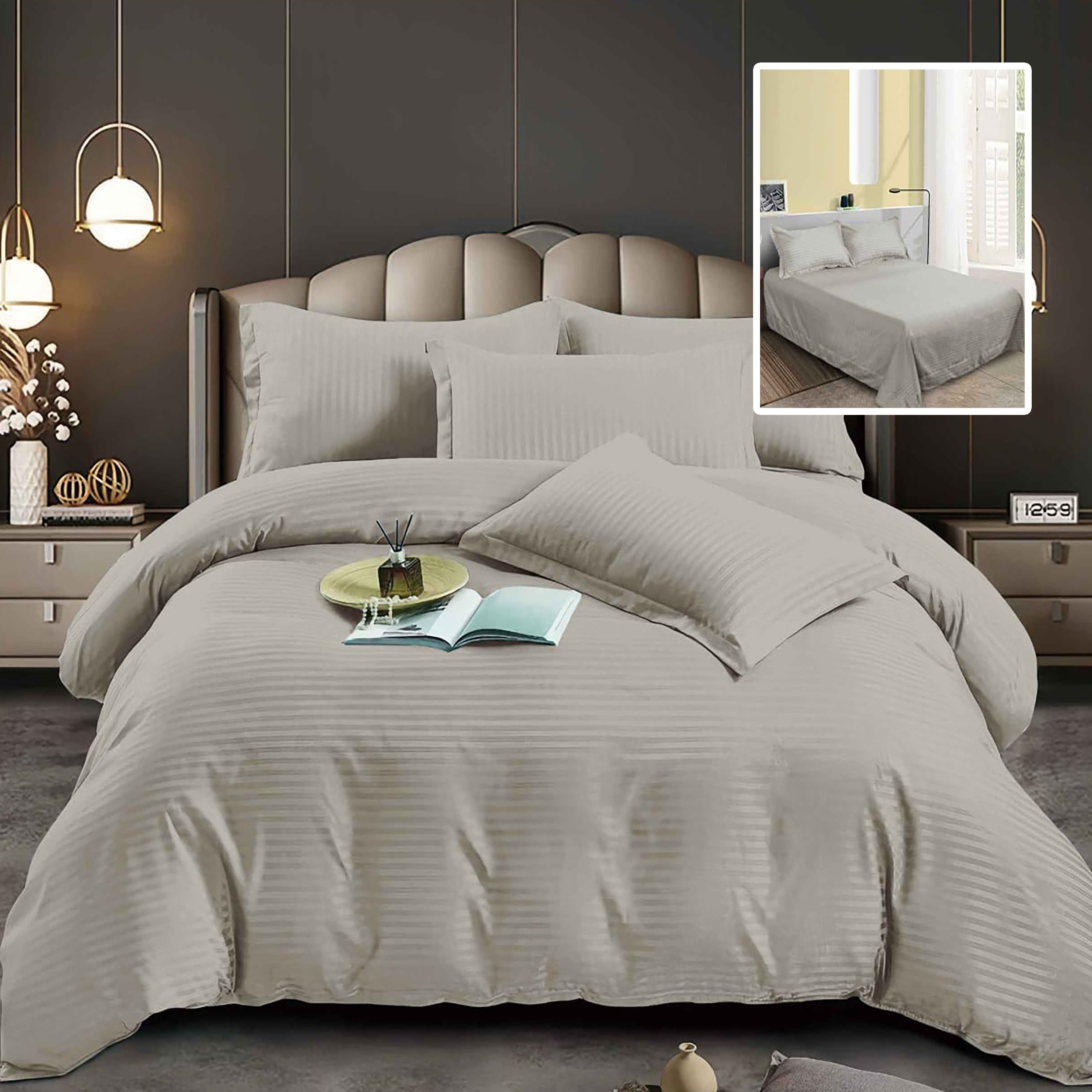 Set lenjerie de pat pentru 2 persoane XXL, Bumbac Damasc Policotton, 4 piese, Cearceaf pat 230x260, Cearceaf pilota 220x200, Fete de perne 50x70 x 2, Bej Relax KipRoom