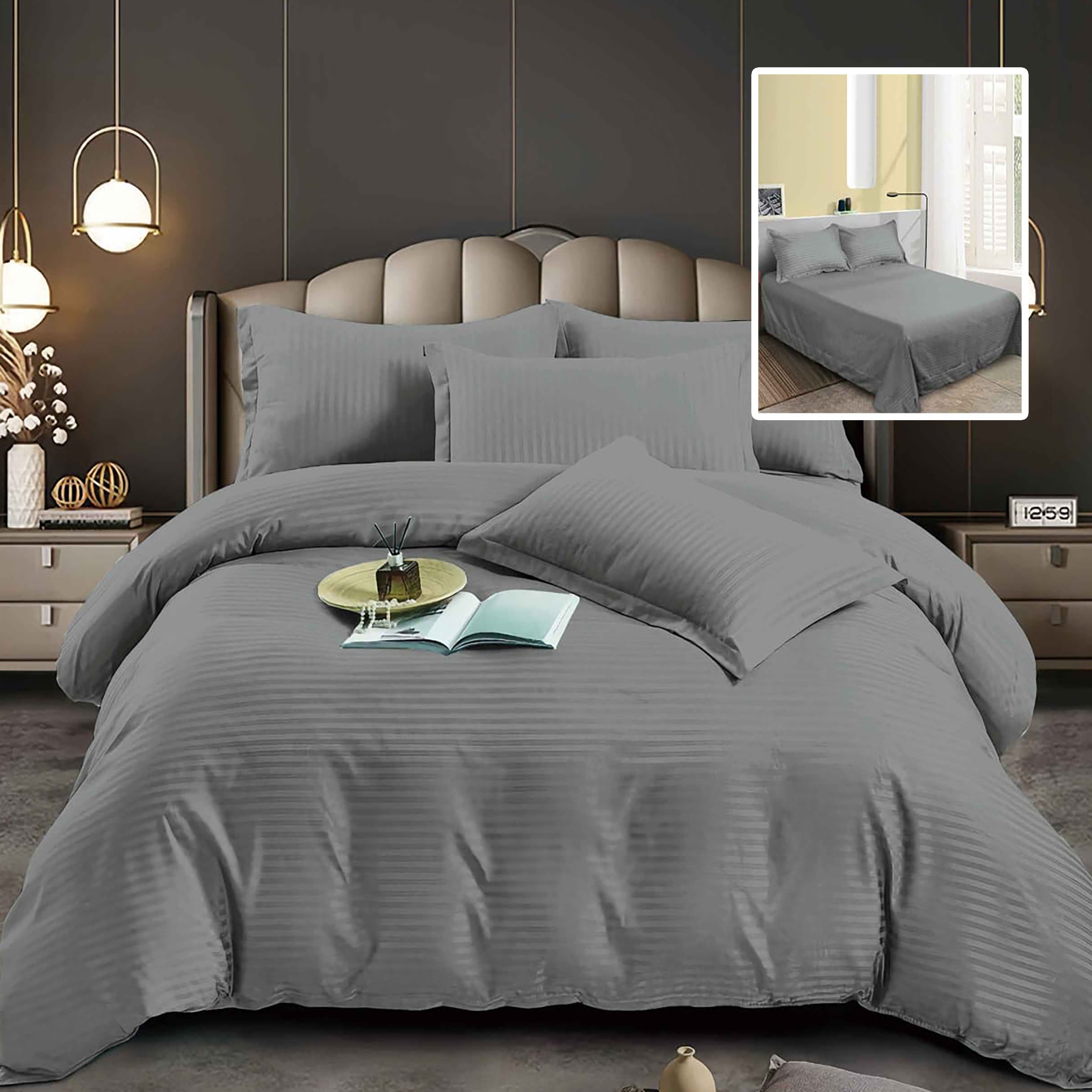 Set lenjerie de pat pentru 2 persoane XXL, Bumbac Damasc Policotton, 4 piese, Cearceaf pat 230x260, Cearceaf pilota 220x200, Fete de perne 50x70 x 2, Gri Relax KipRoom