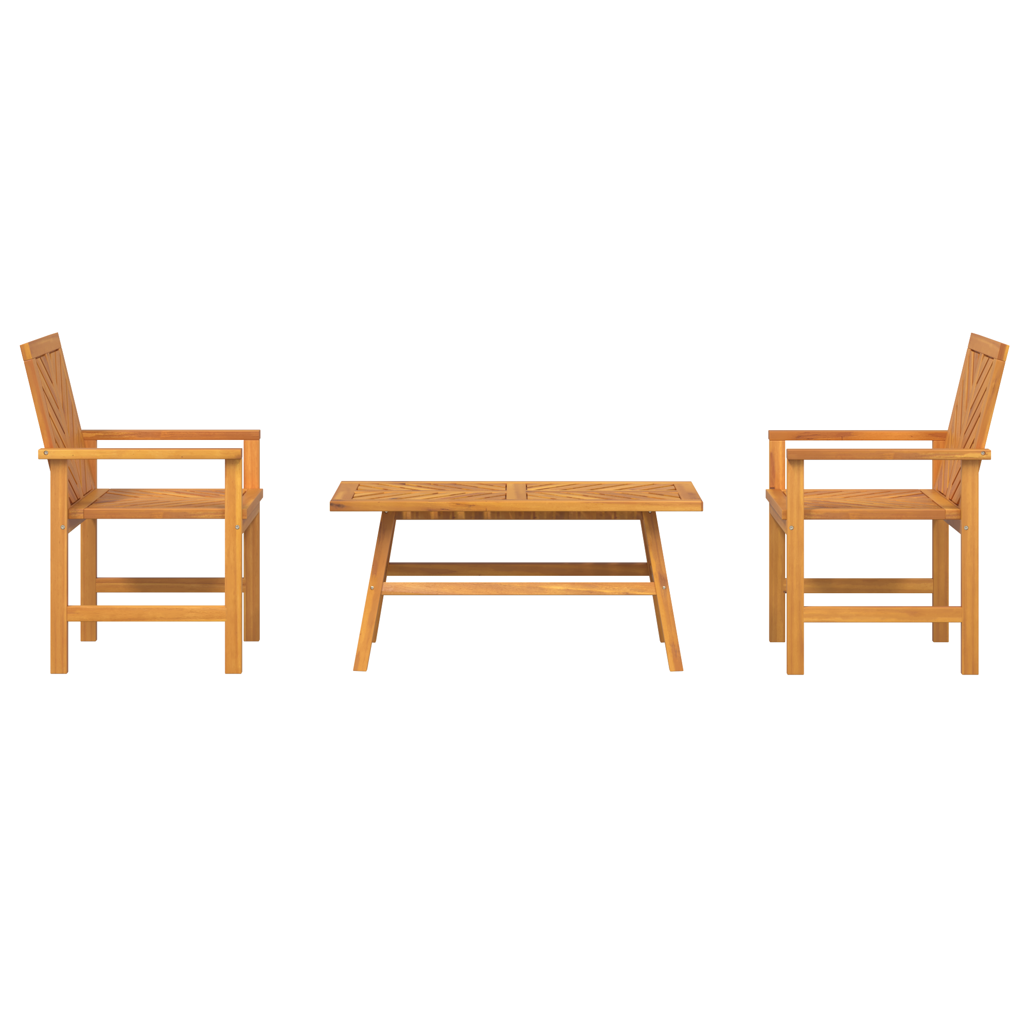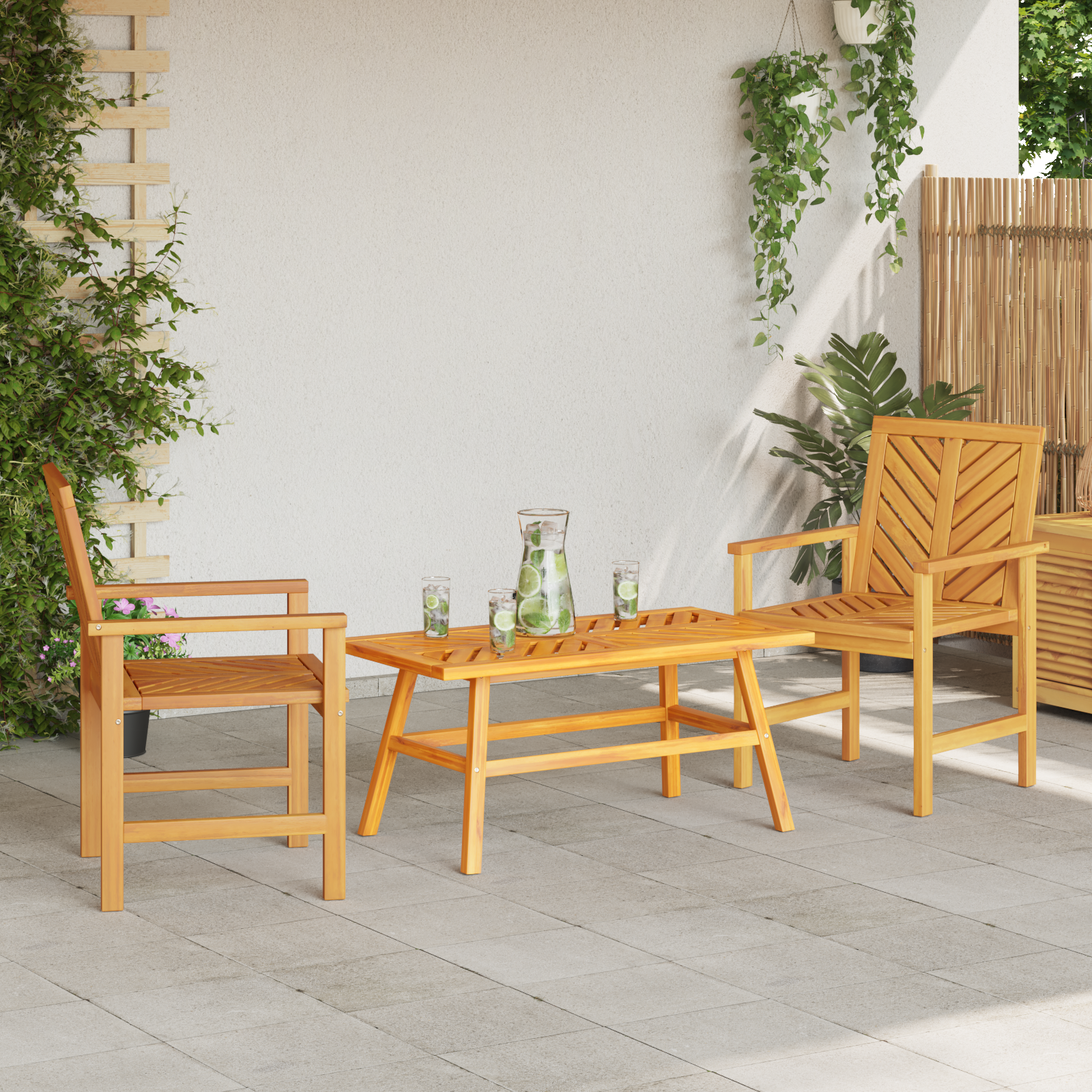 Setul de lounge pentru grădină vidaXL din 3 piese are stil și utilitate maximă, perfect pentru un spațiu exterior plăcut. Fabricat din lemn masiv de acacia, aduce o vibrație naturală ce se potrivește frumos cu natura, fiind o alegere ideală pentru balconul sau patio-ul tău.