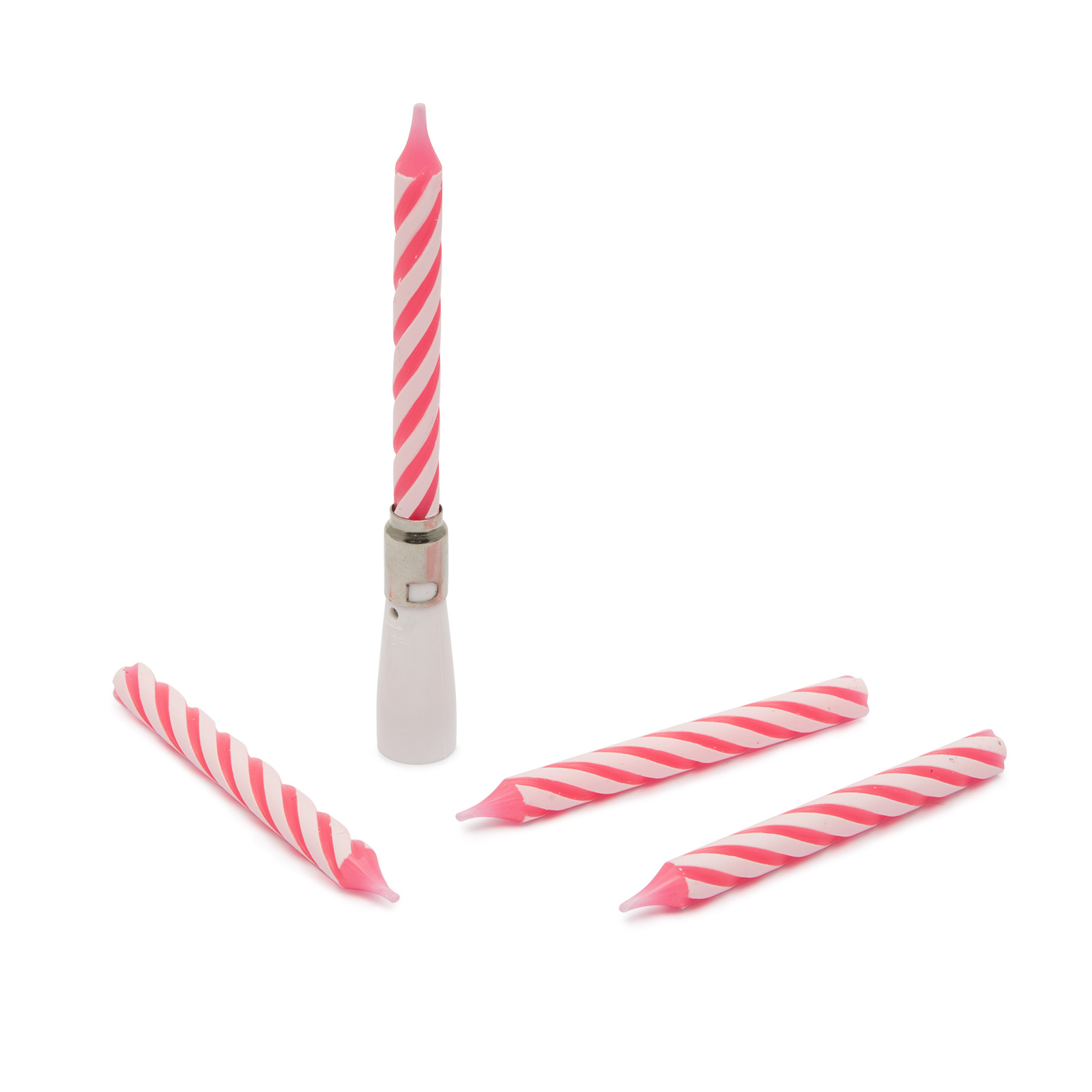 Lumanari muzicale colorate in dungi albastre sau roz, cu suport.