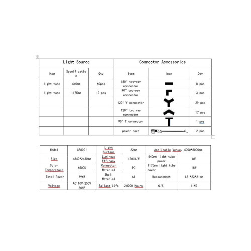 Specificatii Set lumini LED hexagonale 636W 6000K