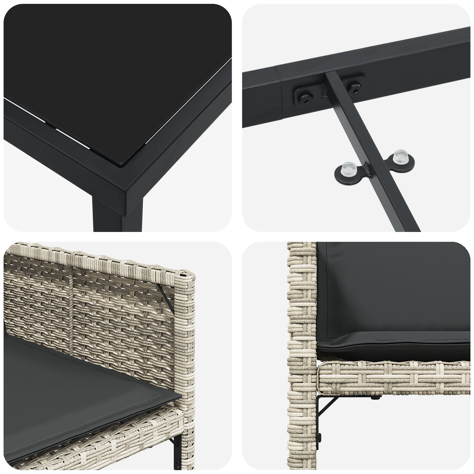 - Design Stylish: Ratanul polimer gri deschis cu sticlă securizată neagră e o adăugare faină pe orice terasă.