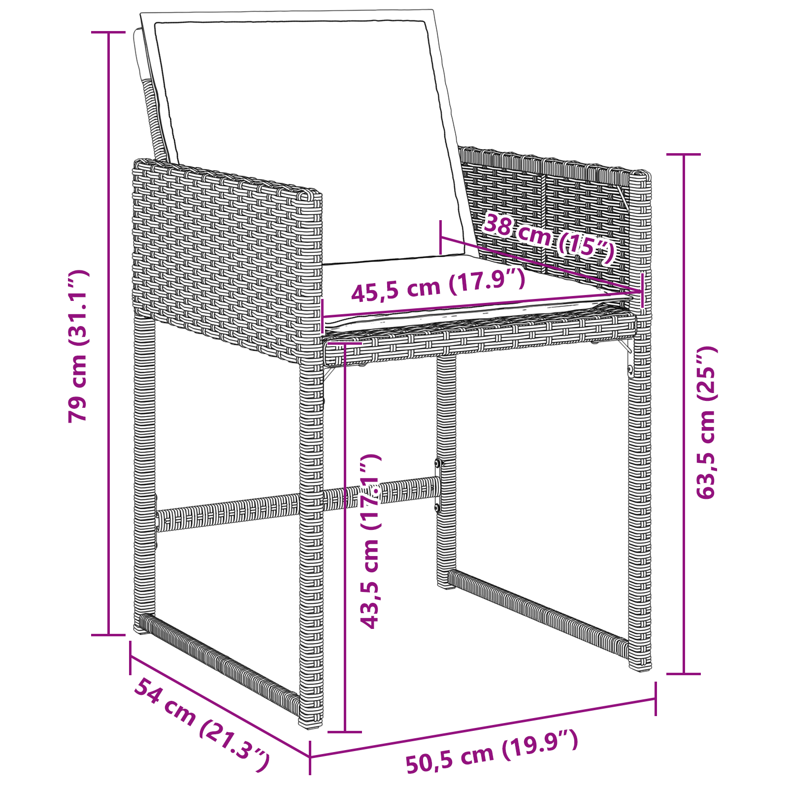 - Seat Depth: 45 cm