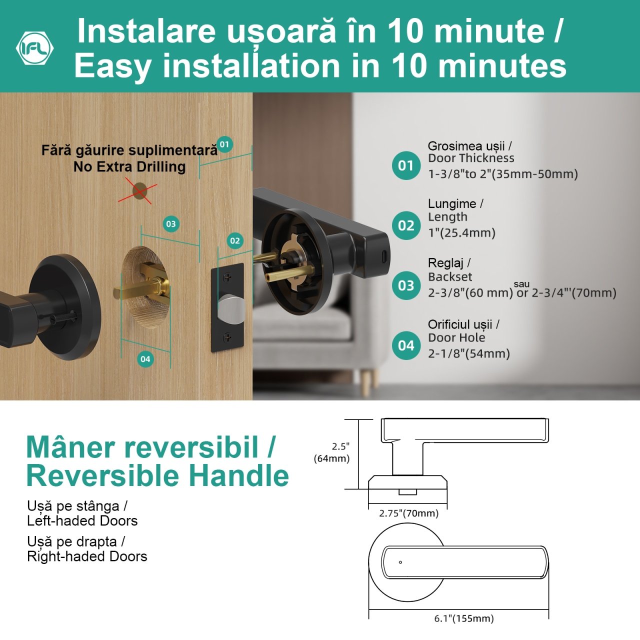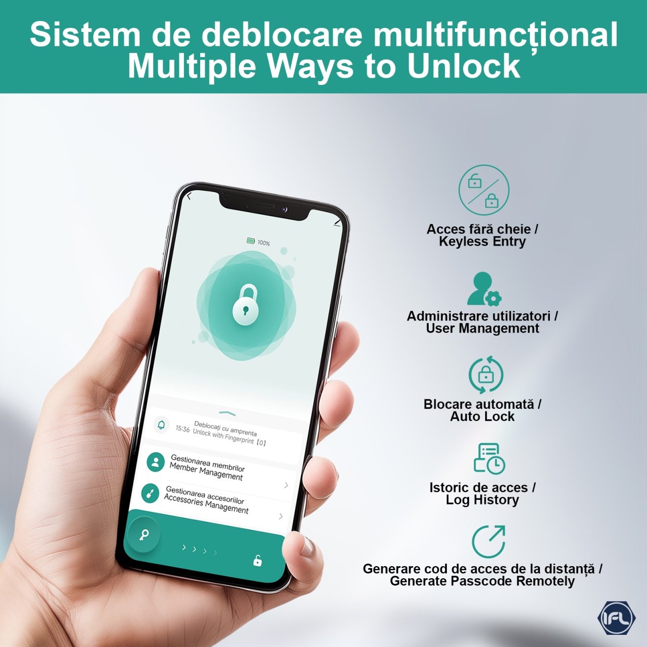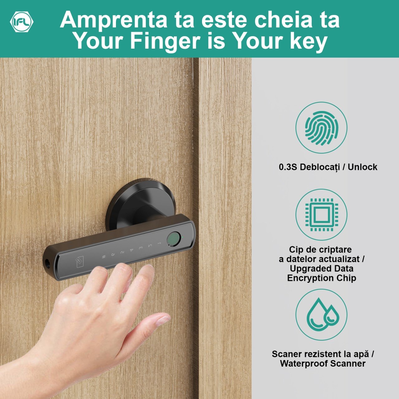 Set Maner & Broasca IFL cu Deschiere Amprenta, Cod PIN, Administrare Aplicatie, Negru Mat SmartElectro IntelligentHouse