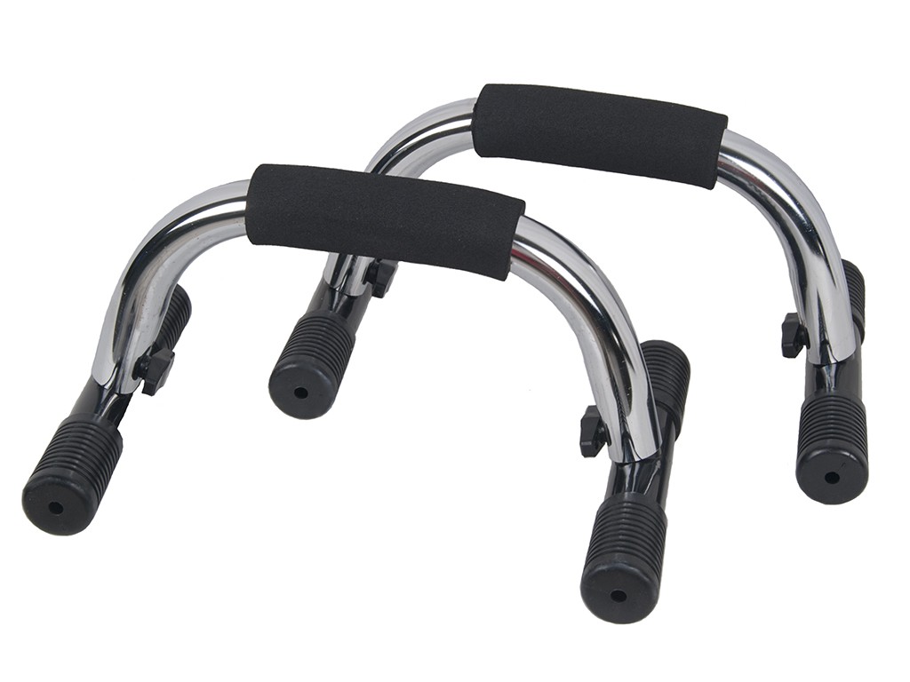 Manerele de Flotari Cromate Sportmann va ajuta sa realizati flotari precise si eficiente. Manerele sunt fabricate din metal cromat pentru rezistenta indelungata si sunt acoperite cu spuma anti-alunecare care ofera confort sporit in timpul exercitiului. Piciorele sunt special concepute pentru a asigura stabilitate maxima si rezistenta. Avantajul folosirii manerelor de flotari comparativ cu flotarile clasice este eficienta mai ridicata a exercitiului, datorita posibilitatii de coborare a pieptului mai aproape de podea. Manerele de Flotari Cromate Sportmann sunt recomandate pentru antrenarea musculaturii superioare a corpului, in special muschii pieptului.