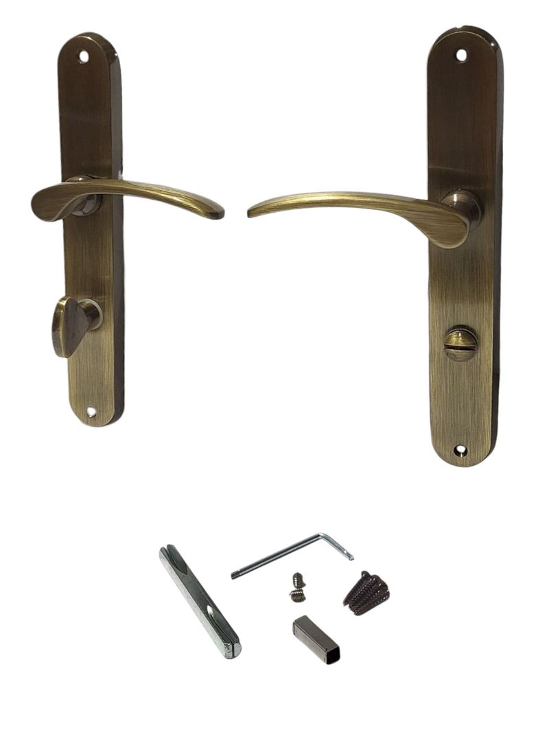 Setul de mânere pentru ușă Violetta WC este o alegere practică și elegantă pentru uși de baie sau toaletă. Designul cu plăci lungi și finisajul tip bronz antichizat oferă un aspect clasic, ușor de integrat în amenajări moderne sau tradiționale.