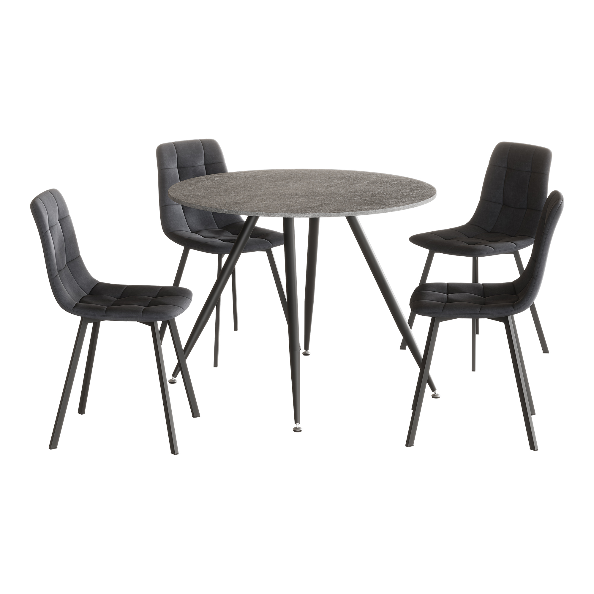 Set masă cu 4 scaune Fitjar, aspect beton și gri închis, 5 piese