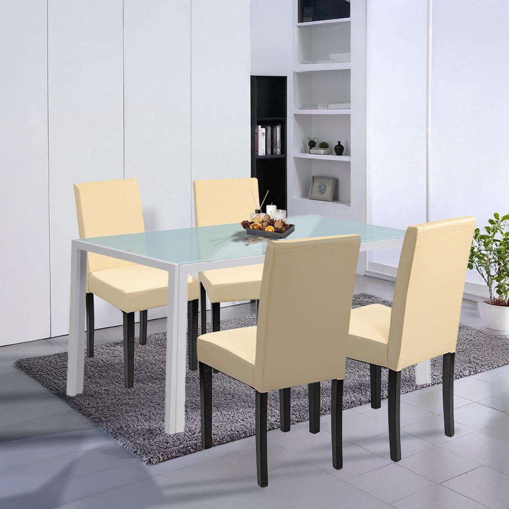 Set masă cu 4 scaune Leziter Mira alb-bej, masă din sticlă securizată 140x80