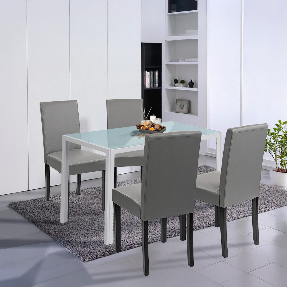 Set masă cu 4 scaune Leziter Mira alb-gri, masă sticlă securizată 120x70
