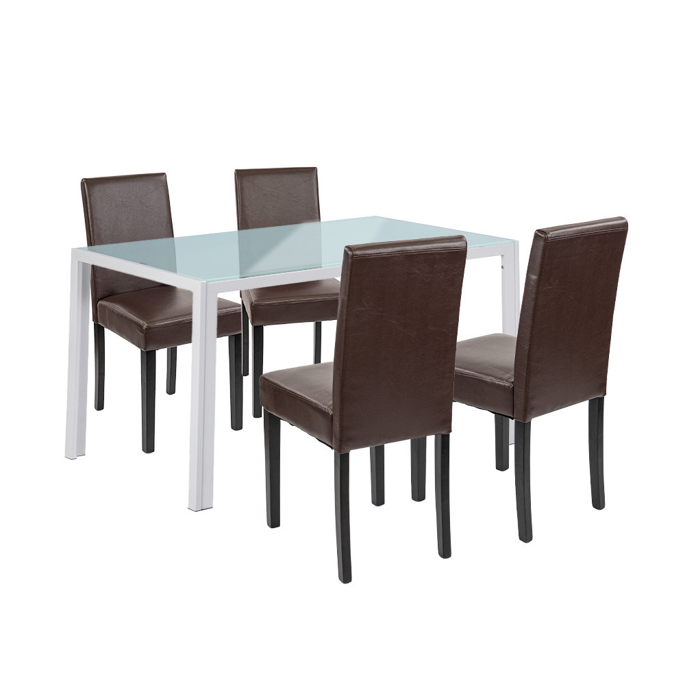 Set masă cu 4 scaune Leziter Mira alb-maro, blat sticlă securizată 140x80