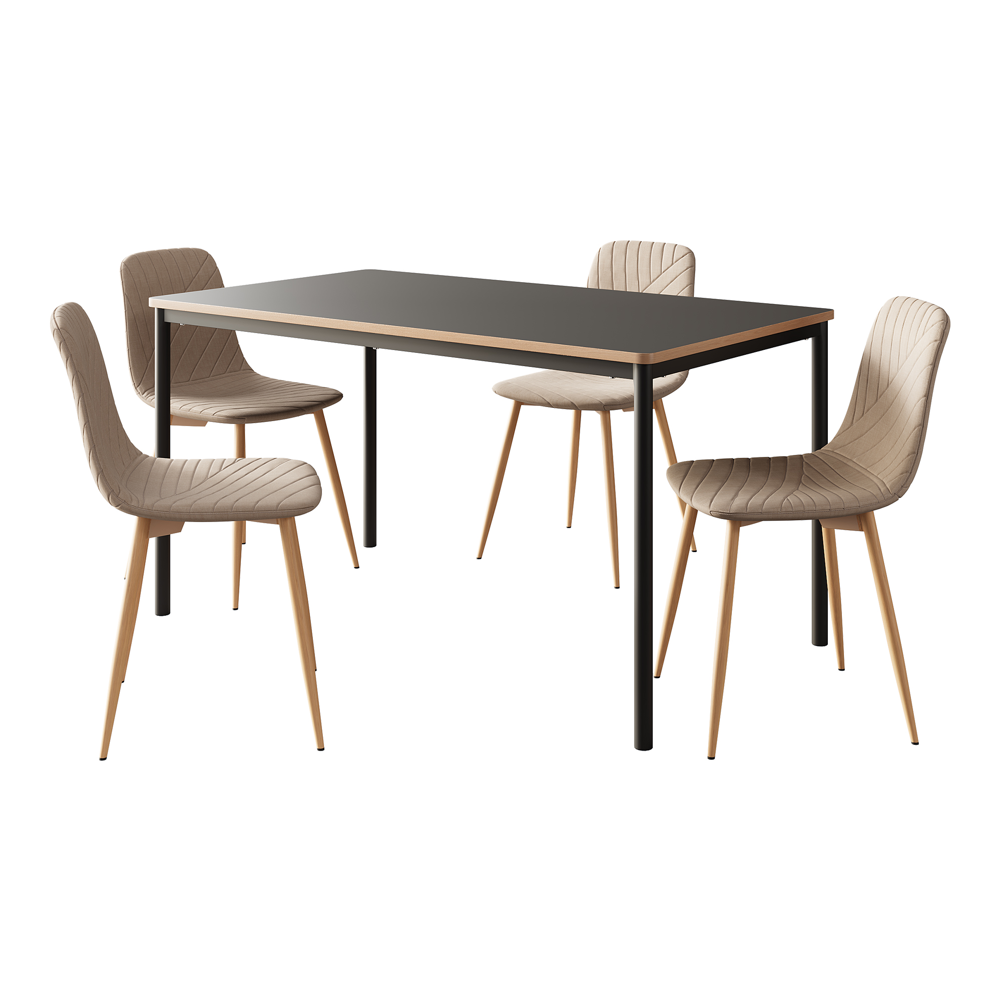 Setul de masă cu 4 scaune Lindesberg este alegerea ideală pentru cei care își doresc un spațiu de dining modern, confortabil și ușor de integrat în locuință. Cu un design elegant, în nuanțe de gri, maro deschis și accente cu aspect de lemn, acest set dining aduce un plus de stil în bucătărie, living sau sufragerie.