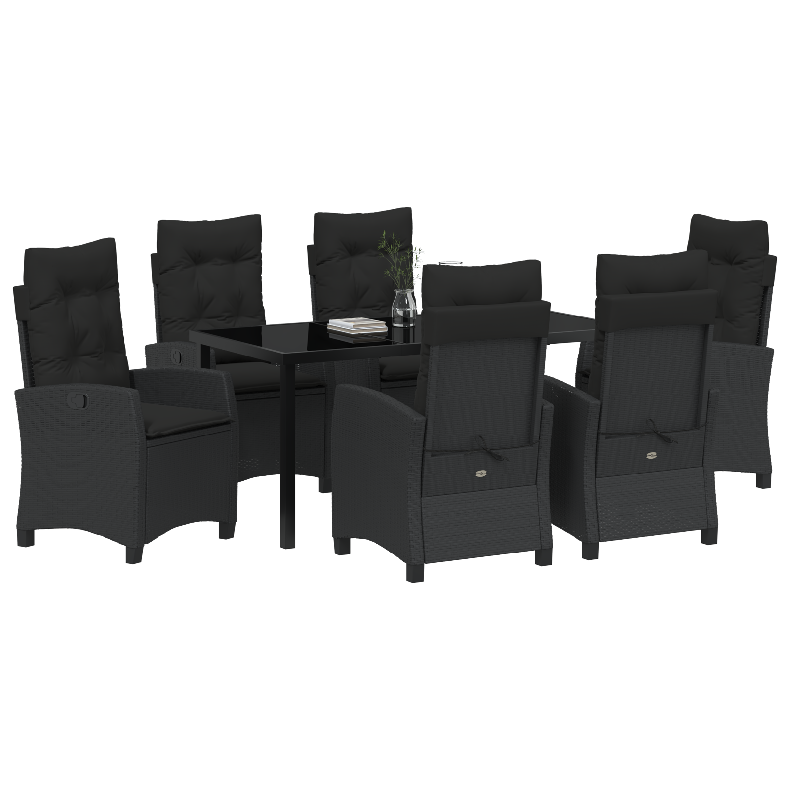 Set masă de grădină 7 piese cu perne negre din poliratan GartenMobel Dekor