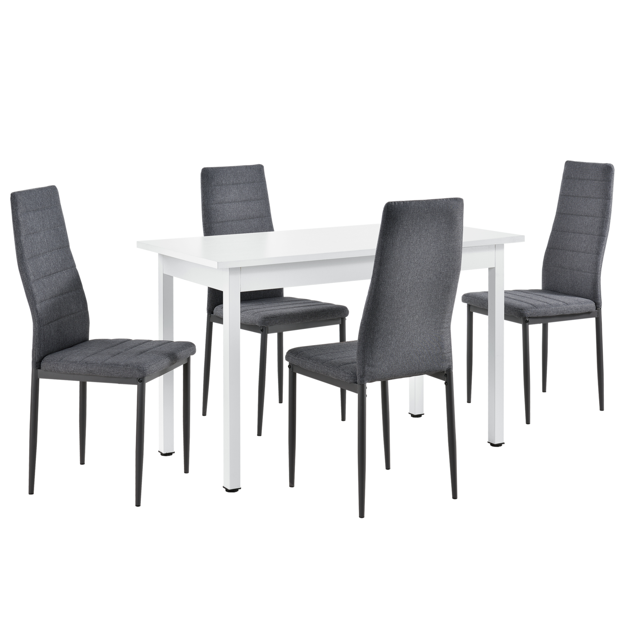 Adaugă un plus de stil și funcționalitate zonei de luat masa cu acest set masă dining format dintr-o masă albă și 4 scaune tapițate gri. Designul modern, liniile simple și combinația elegantă de alb cu gri îl fac potrivit pentru bucătărie, sufragerie sau chiar pentru un spațiu de tip office.