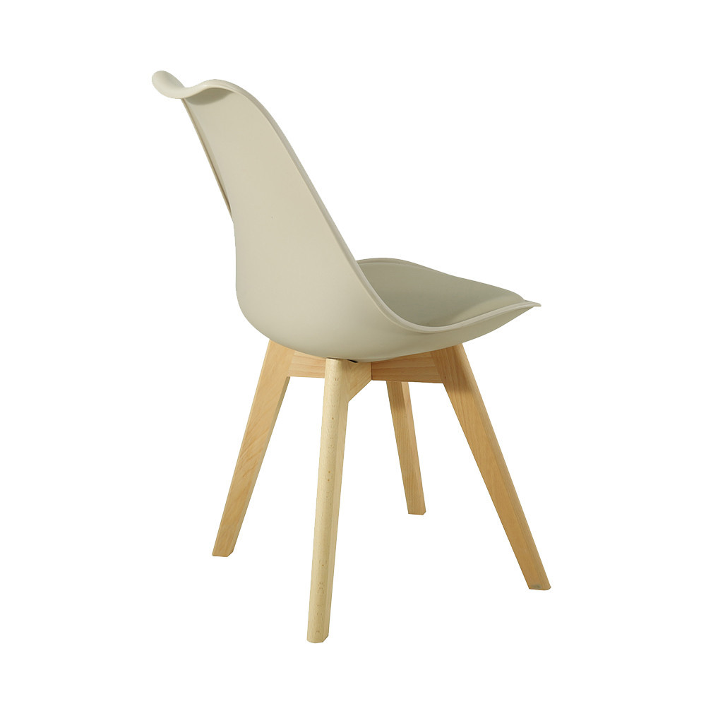 - Scaune: șezut PP bej + tapițerie PVC bej, picioare din lemn de fag