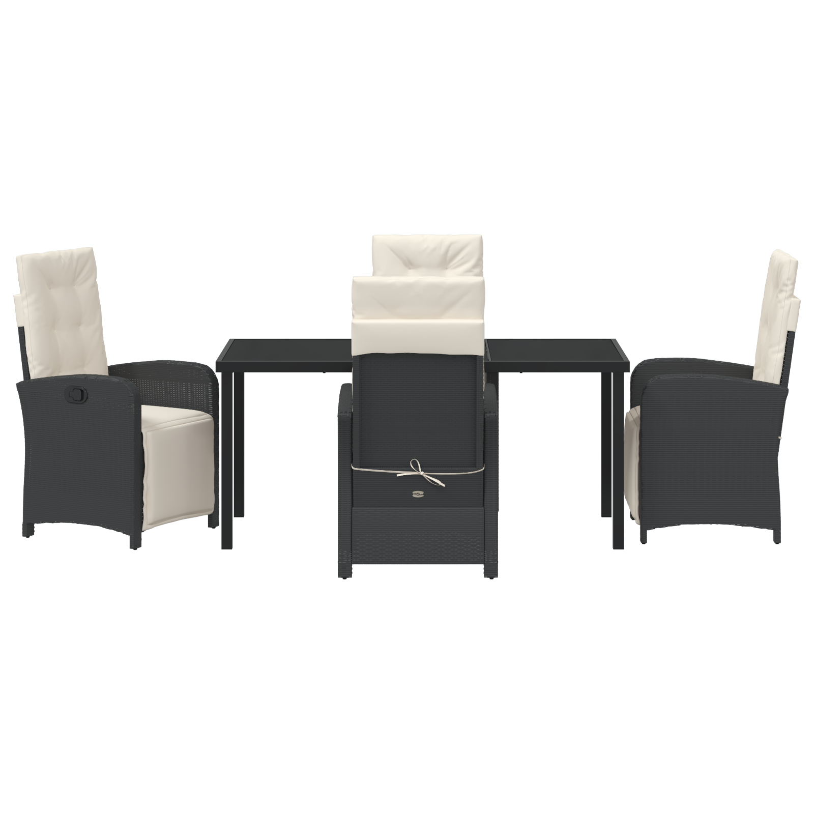 Set masă grădină 5 Piese cu Perne Negru Poliratan, Masa grădină Neagră 160x80x73 cm Sticlă Temperată GartenMobel Dekor