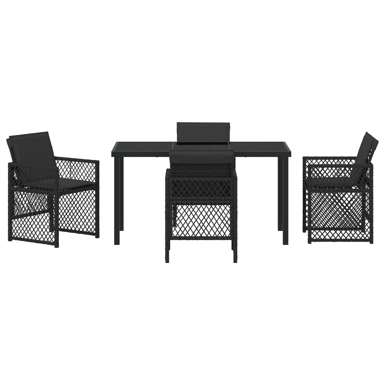 Set masă grădină cu 5 piese și perne Negre Poly Rattan, Masă grădină Neagră 140x80x73 cm Sticlă Temperată GartenMobel Dekor