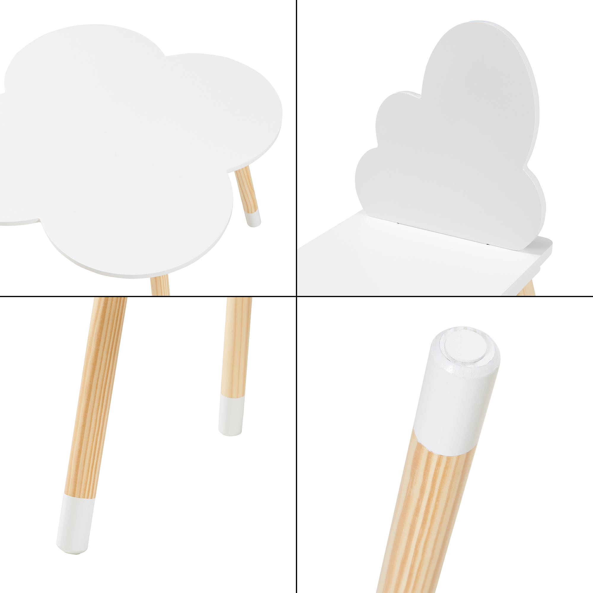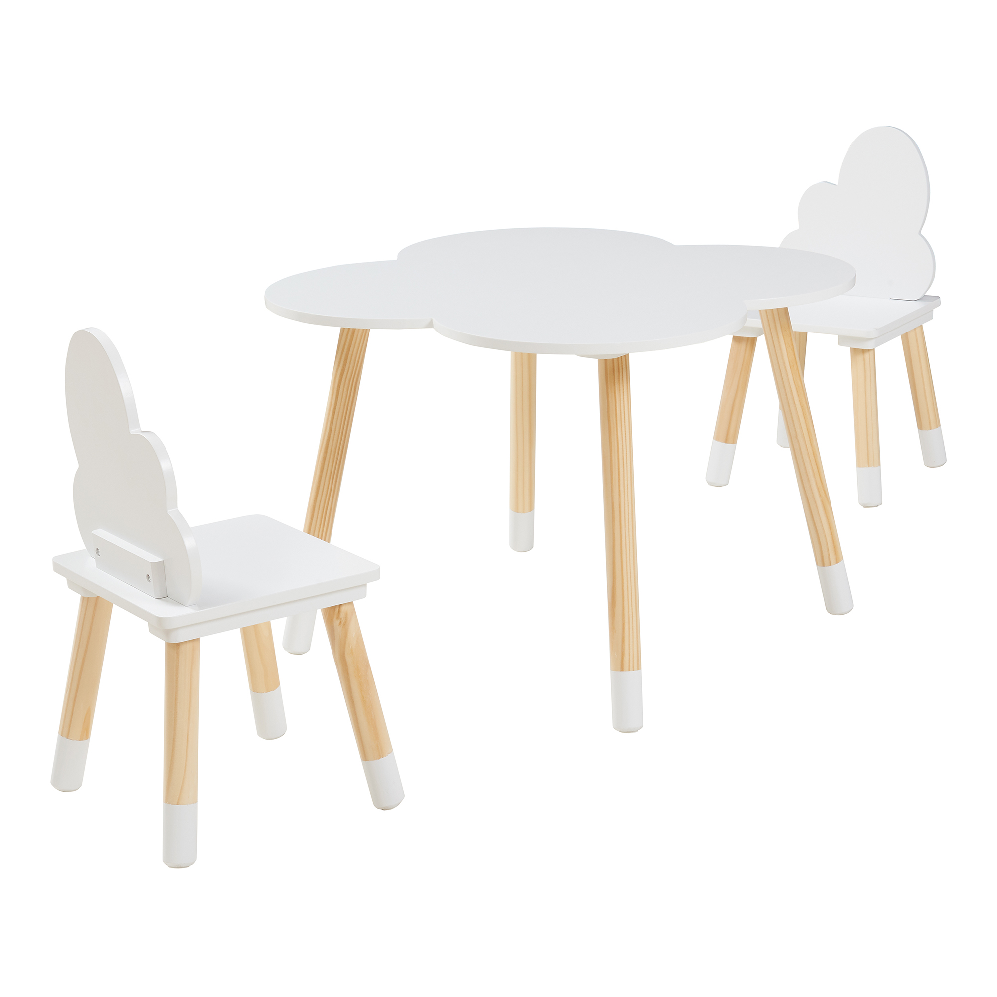 Setul de masă cu 2 scaune pentru copii este alegerea ideală pentru amenajarea unui colț practic și plăcut în camera celor mici. Cu un design delicat, inspirat de forma norilor, acest set masă copii în culoare albă se integrează ușor în decoruri moderne, scandinave sau minimaliste.