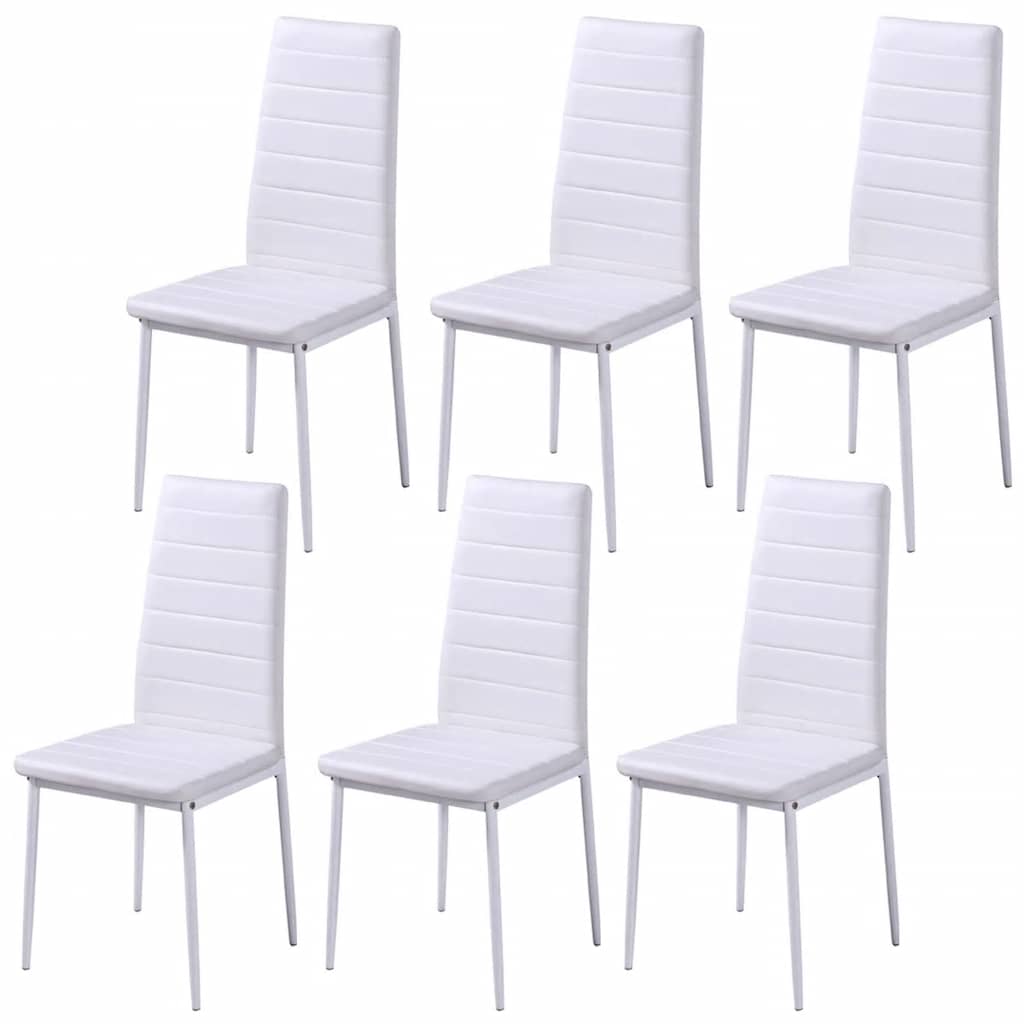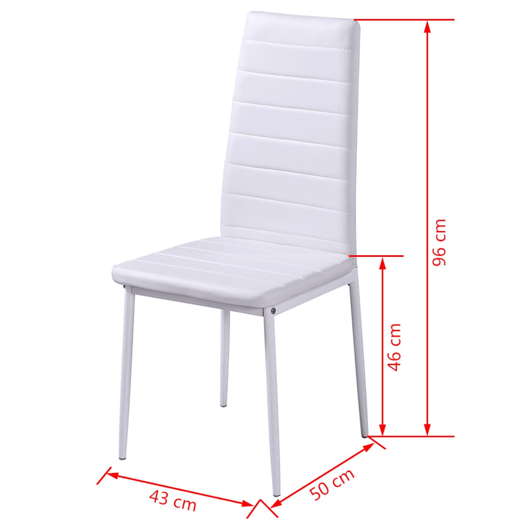 Blatul mesei este realizat din sticlă securizată cu un grad mare de rezistență, ce este ușor de curățat. Fiecare scaun este tapițat cu piele artificială de calitate superioară. Șezutul suplu, căptușit este foarte confortabil.