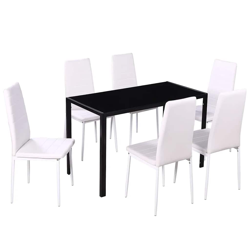 Set masă și scaune de bucătărie 7 piese alb și negru GartenMobel Dekor