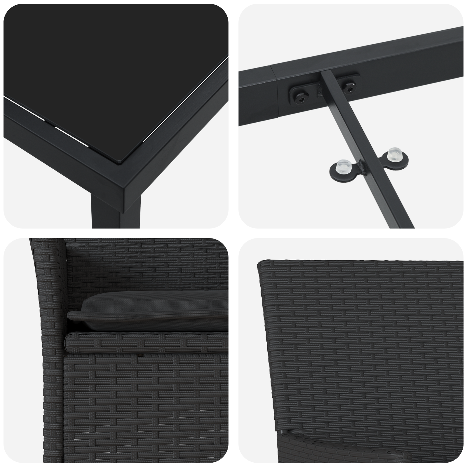 Setul ăsta de mese pentru grădină este perfect pentru întâlniri afară, combinând stilul cu practicabilitatea. Cu un finish neted negru și perne confortabile, dă un vibe contemporan oricărei terase sau balcon.