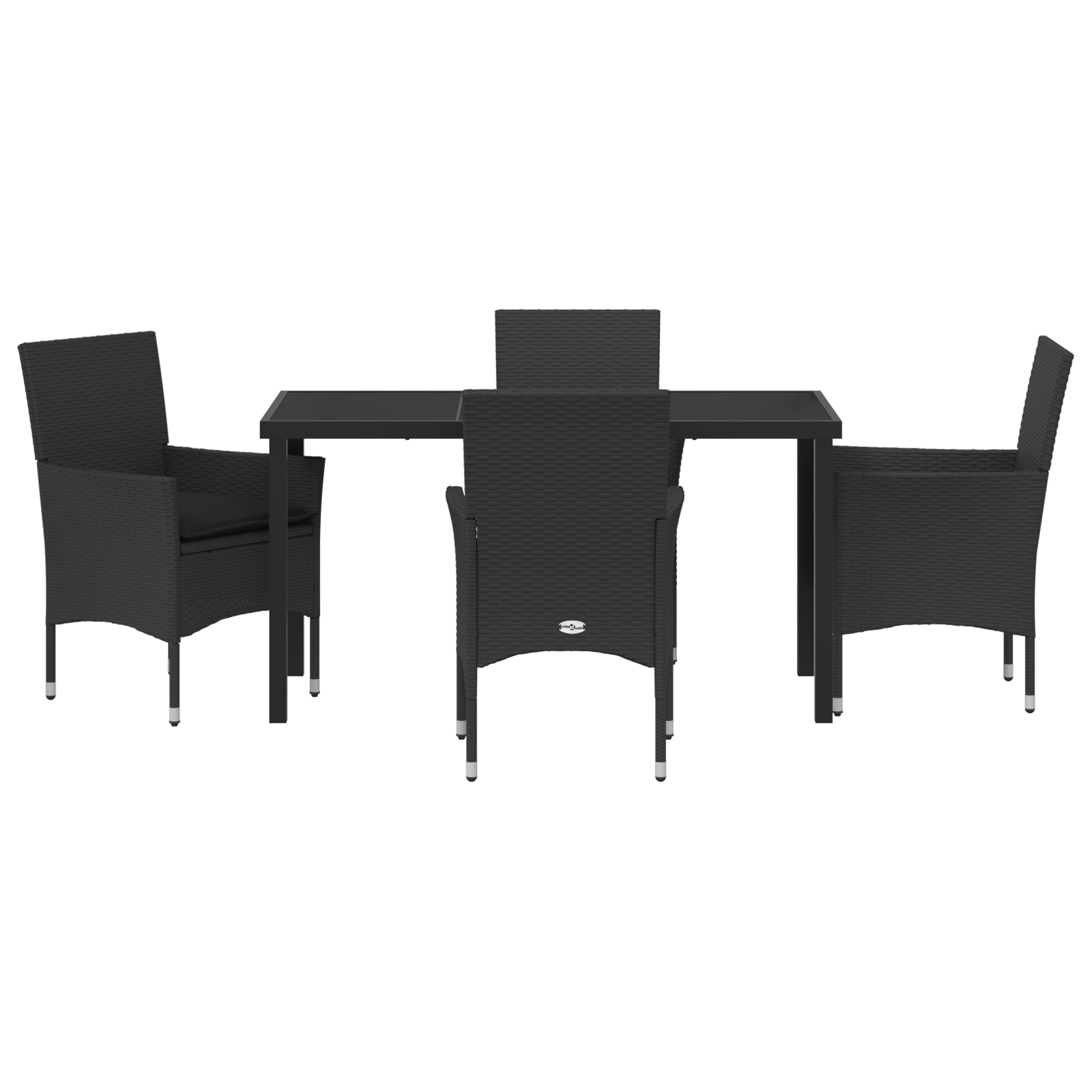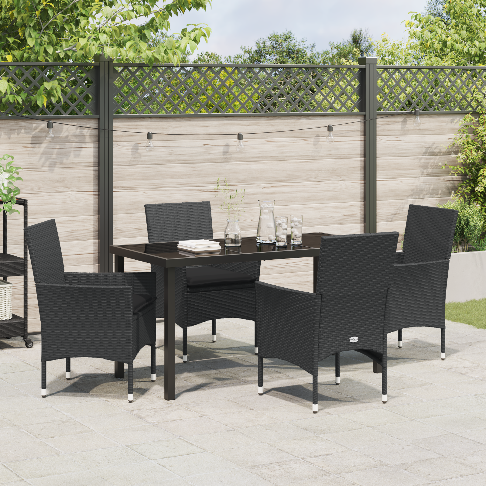 Set mese grădină 5 piese cu perne poliratan negru, Masă neagră 140x80x73 cm din sticlă securizată GartenMobel Dekor