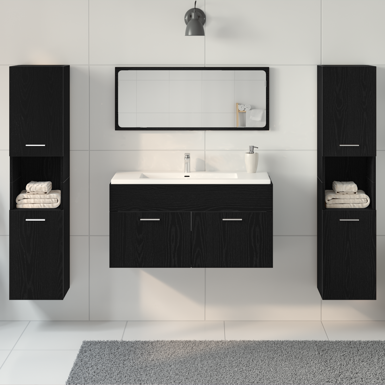 Set mobilier baie 4 piese din lemn prelucrat negru GartenMobel Dekor