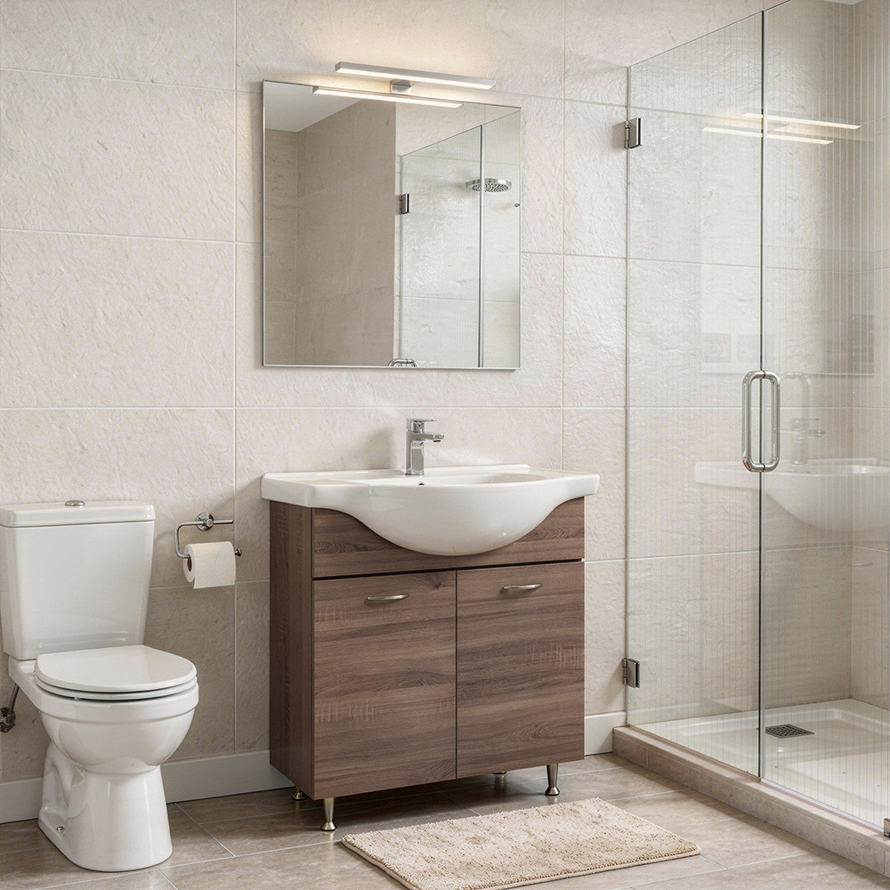 Potrivit pentru bai de dimensiuni medii, garsoniere si apartamente, dar si pentru o baie de serviciu. Corpul pe picioare si spatiul de depozitare te ajuta sa pastrezi baia curata si organizata, iar oglinda inclusa completeaza ansamblul pentru un look coerent.