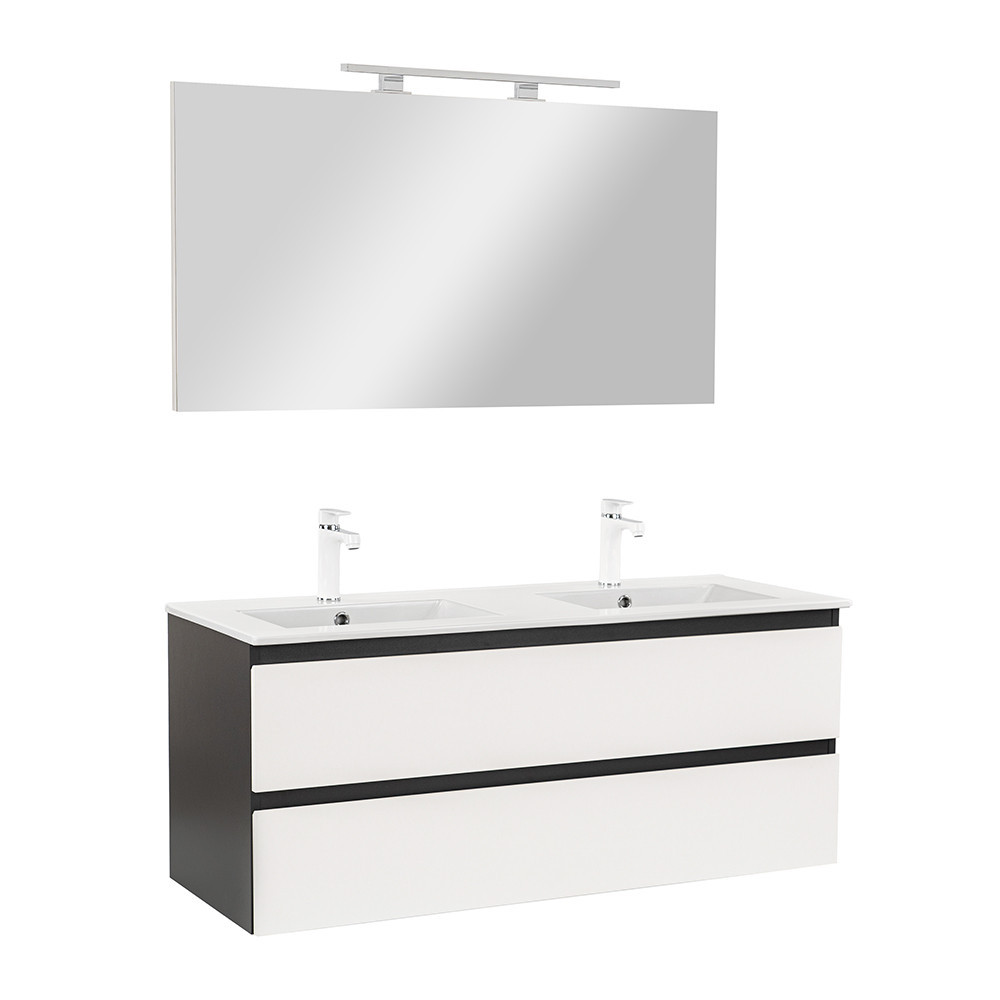Set mobilier baie Leziter Vario Forte 120 cm, suspendat, antracit-alb, cu lavoar