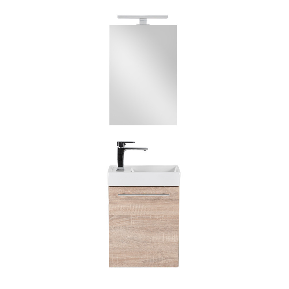 Imbunatateste-ti baia cu setul Leziter Fantastic Melanie, o solutie compacta si eleganta, potrivita mai ales pentru spatii mici. Finisajul stejar Sonoma aduce un aspect cald si modern, iar lavoarul integrat ofera o utilizare comoda zi de zi, cu intretinere usoara.