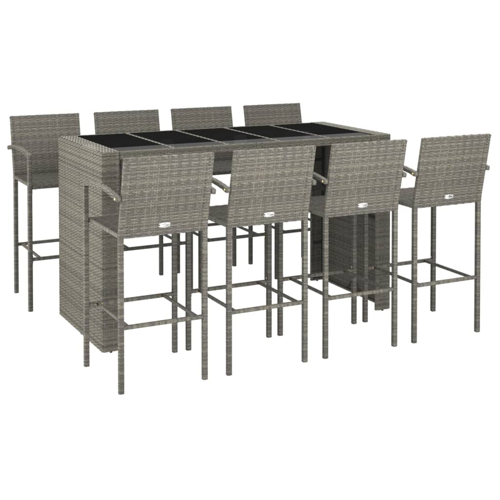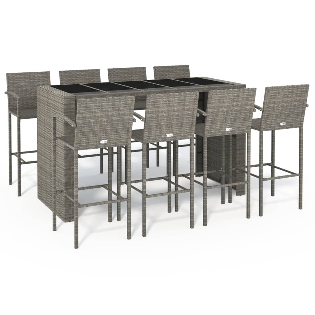 Set mobilier bar de grădină, 9 piese, gri, poliratan GartenMobel Dekor