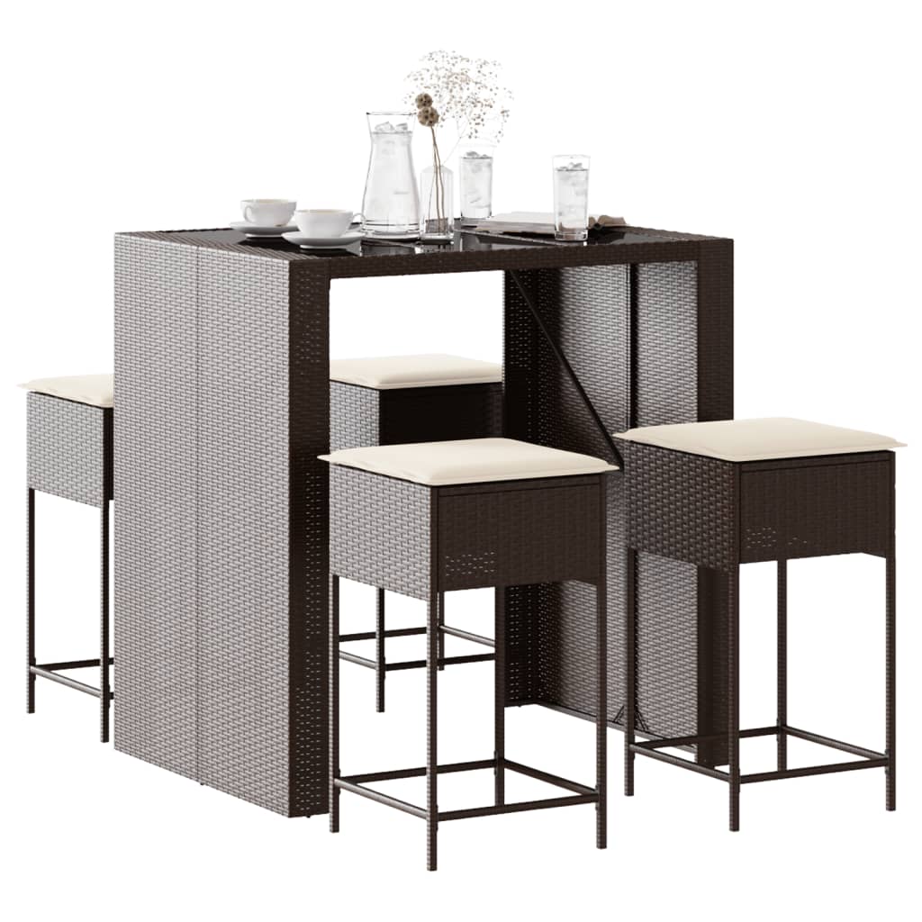 Set mobilier bar de grădină cu perne, 5 piese, maro, poliratan GartenMobel Dekor