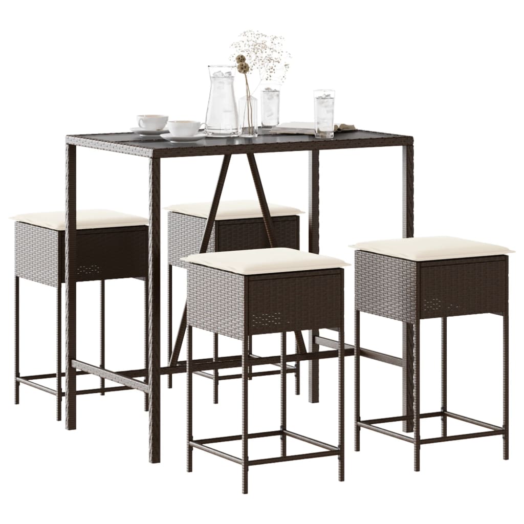 Set mobilier bar de grădină cu perne, 5 piese, maro, poliratan GartenMobel Dekor