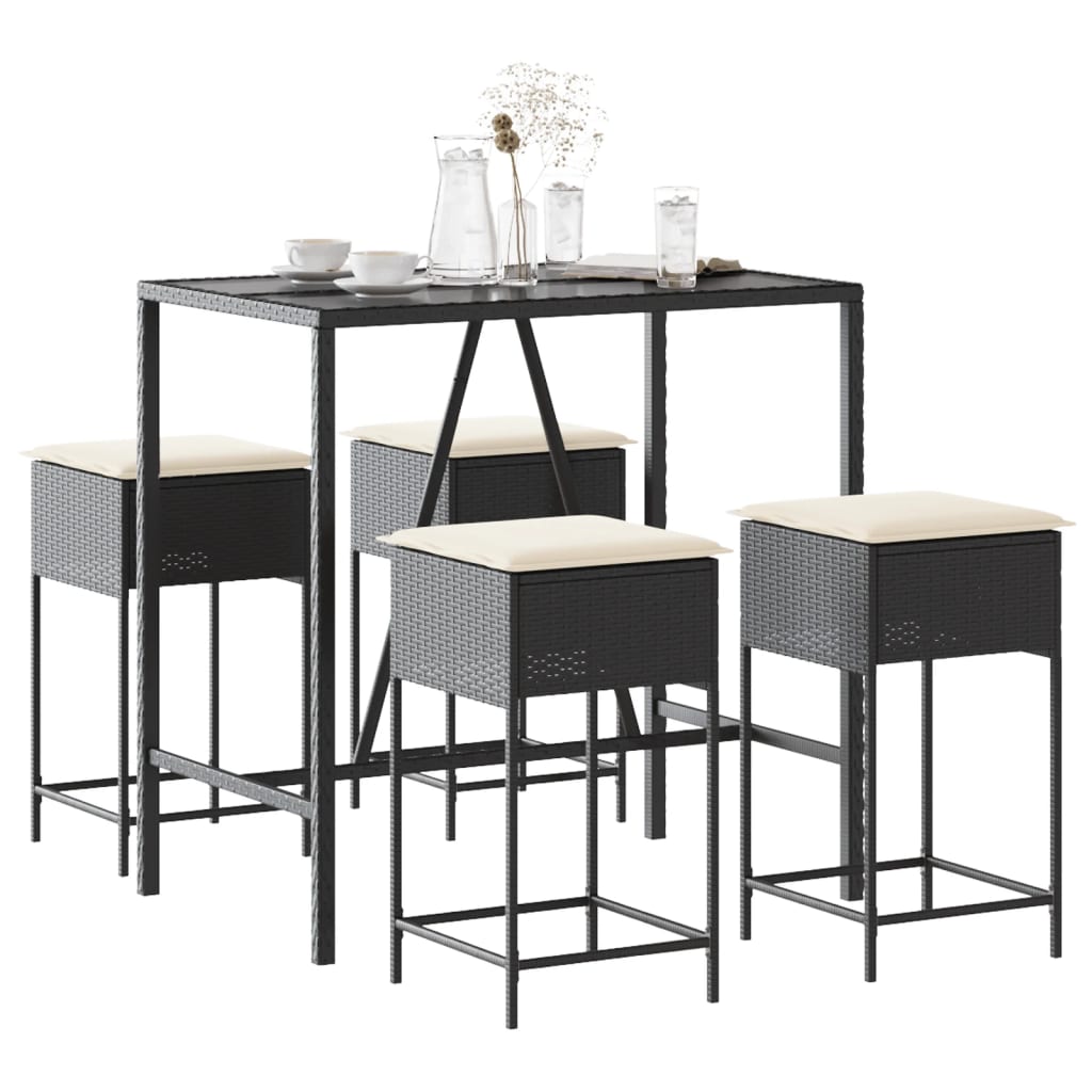Set mobilier bar de grădină cu perne, 5 piese, negru, poliratan GartenMobel Dekor