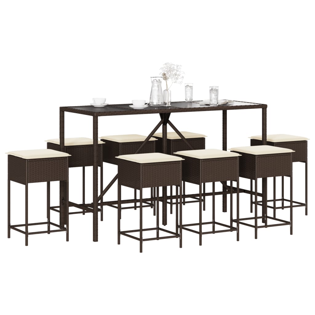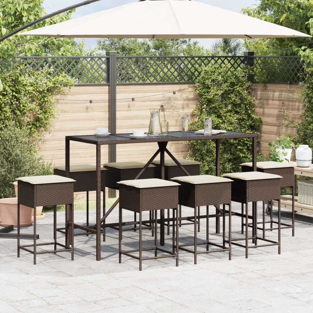 Set mobilier bar de grădină, cu perne, 9 piese, maro, poliratan GartenMobel Dekor