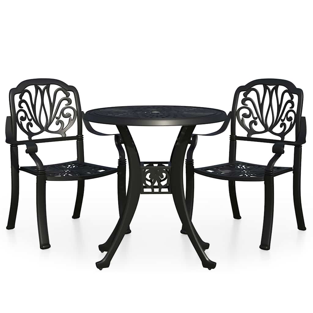 Set mobilier bistro, 3 piese, negru, aluminiu turnat GartenMobel Dekor