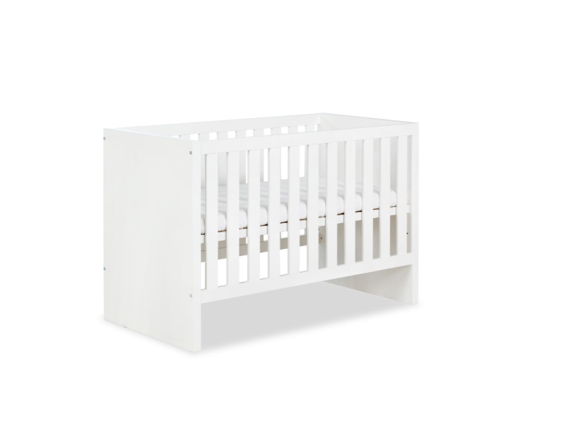 Set mobilier camera bebe Klups Amelia alb cu patut, comoda, dulap si saltea