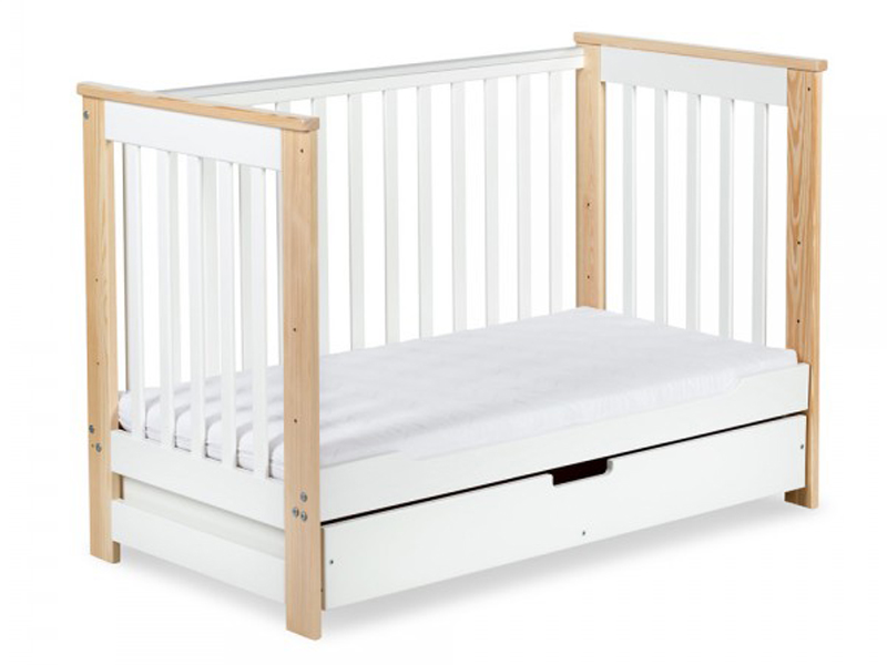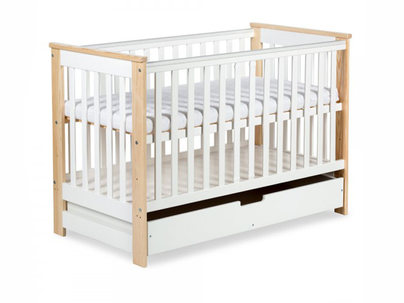 Set mobilier camera bebe Klups IWO alb natur cu patut, dulap si saltea