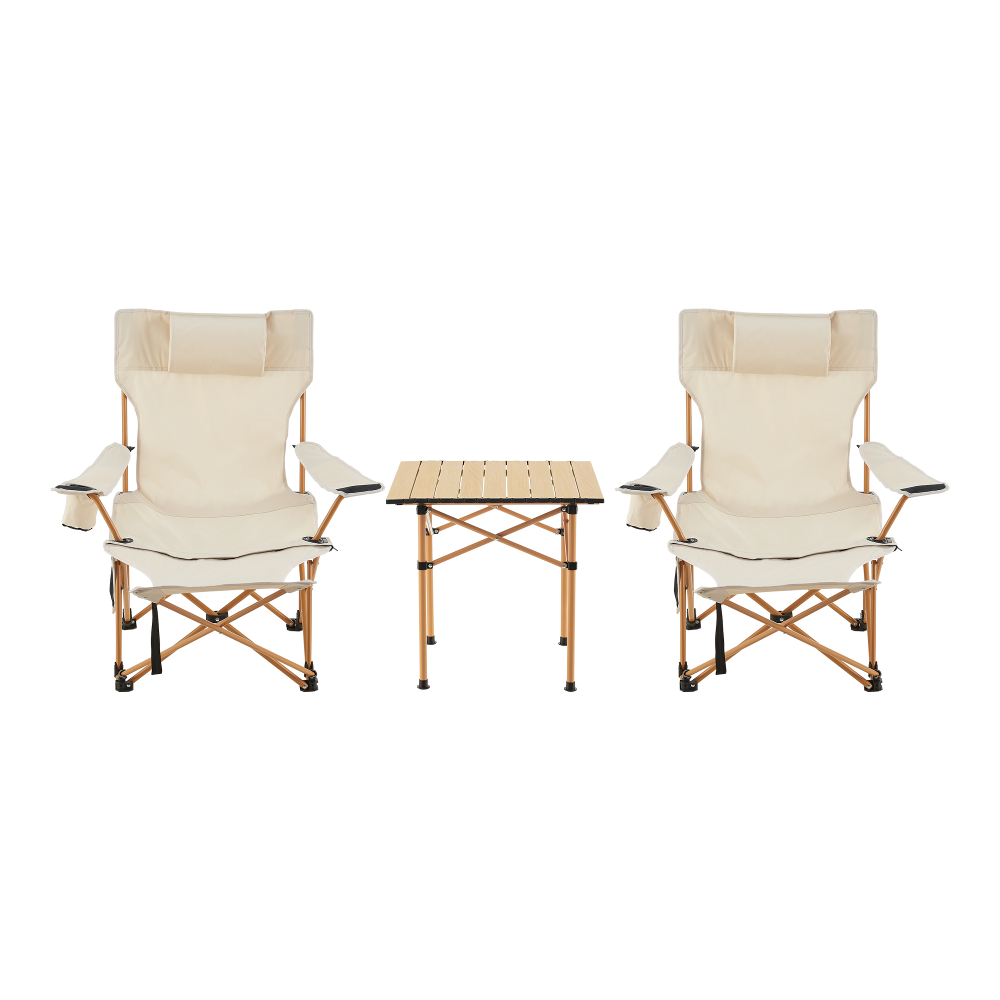 Set mobilier camping Bellante cu 2 scaune pliabile si masa, bej