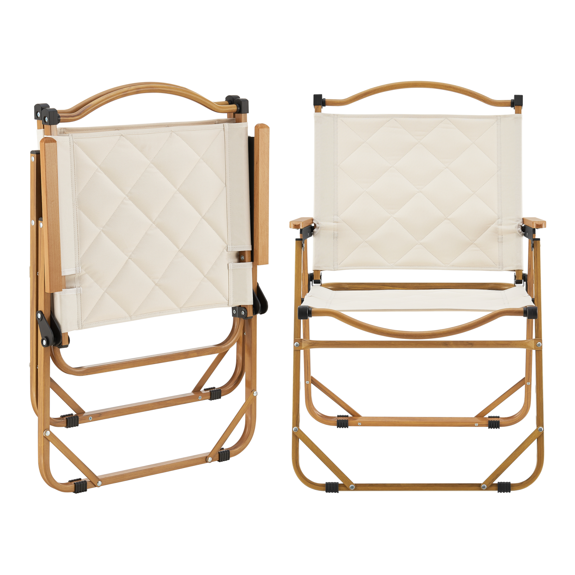 Scaunele sunt prevazute cu sezut si spatar din material textil Oxford 600D, rezistent la uzura si la umiditate, potrivit pentru folosire frecventa in exterior. Cotierele integrate sporesc confortul, iar designul pliabil le face usor de depozitat dupa utilizare.