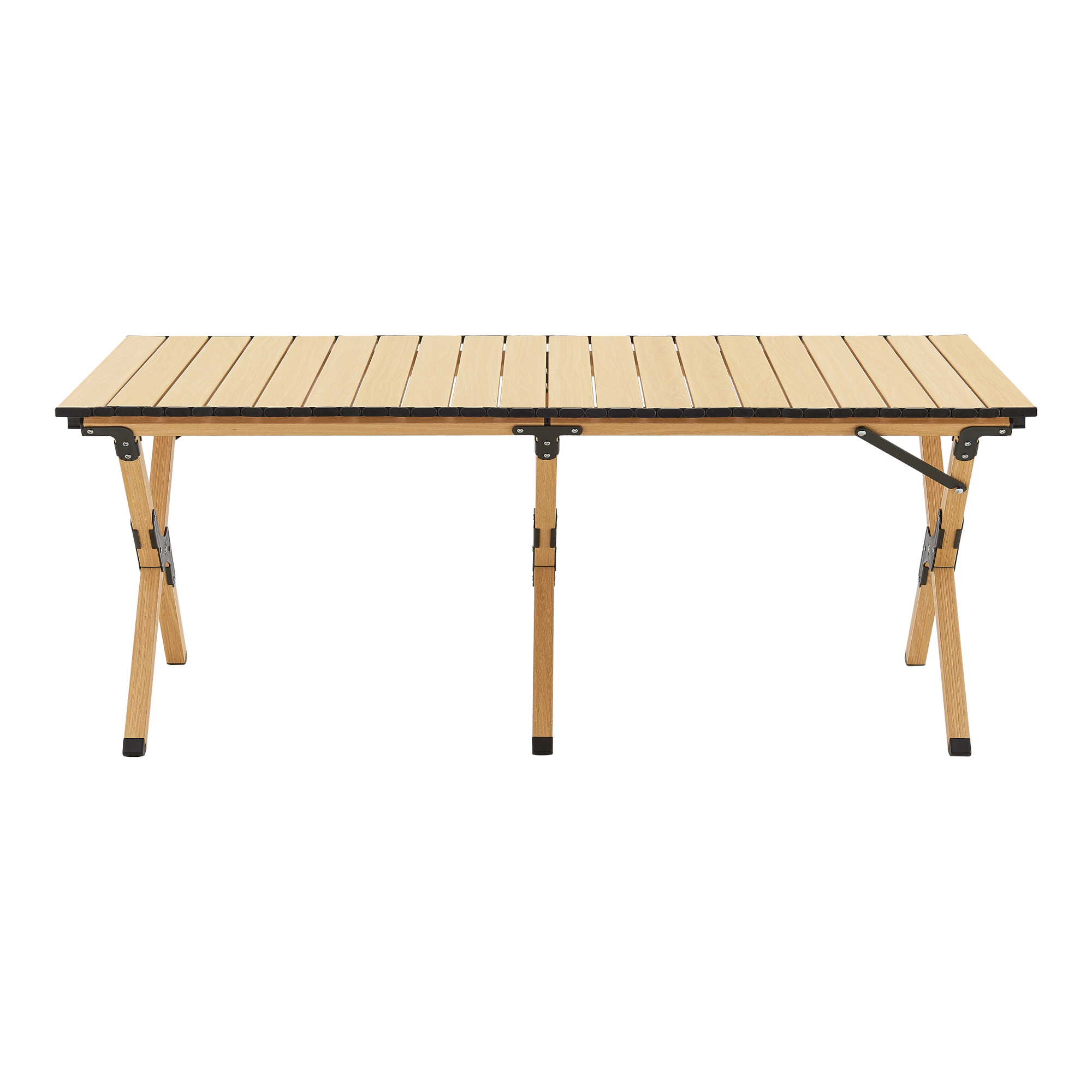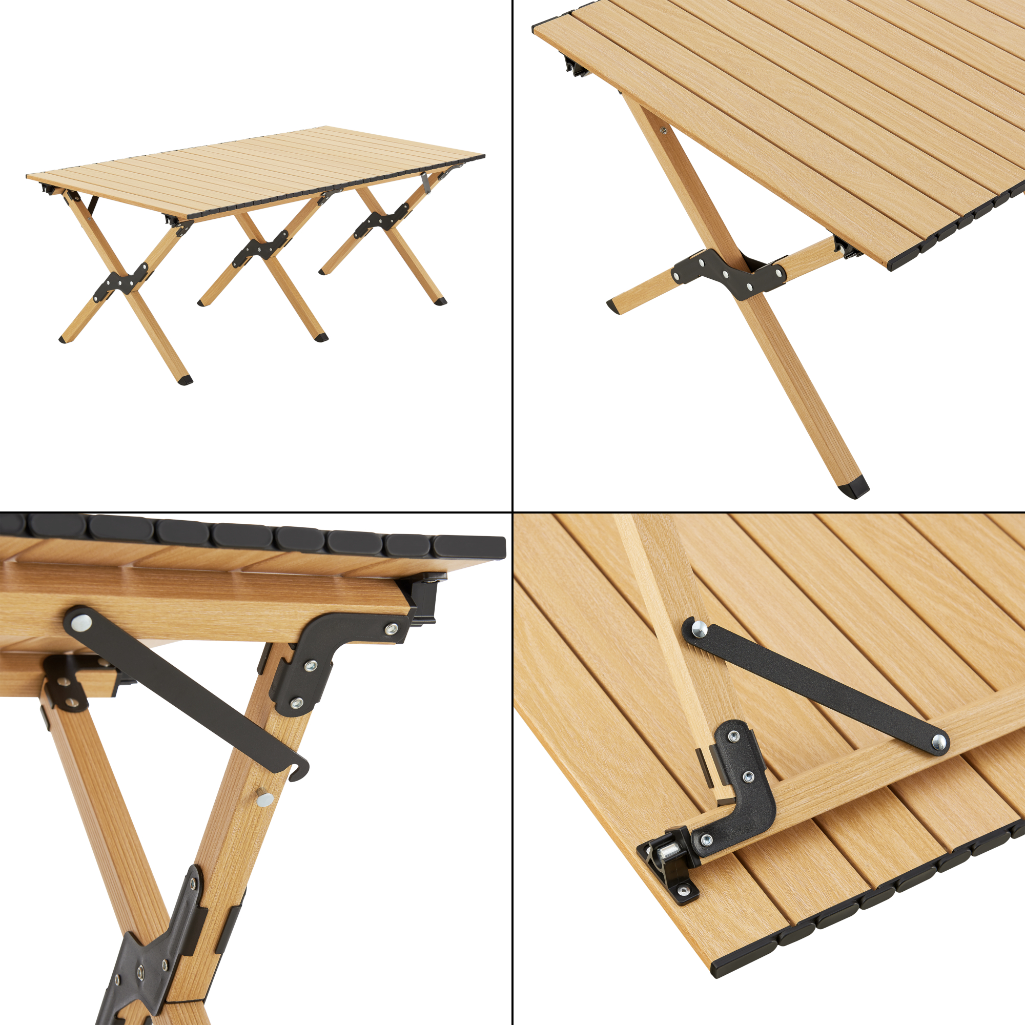 Masa cu blat din aluminiu in aspect de lemn ofera o suprafata dreapta si stabila pentru servirea mesei, jocuri sau relaxare in aer liber. Suprafata neteda se curata usor, fiind potrivita pentru utilizare zilnica in camping sau acasa.