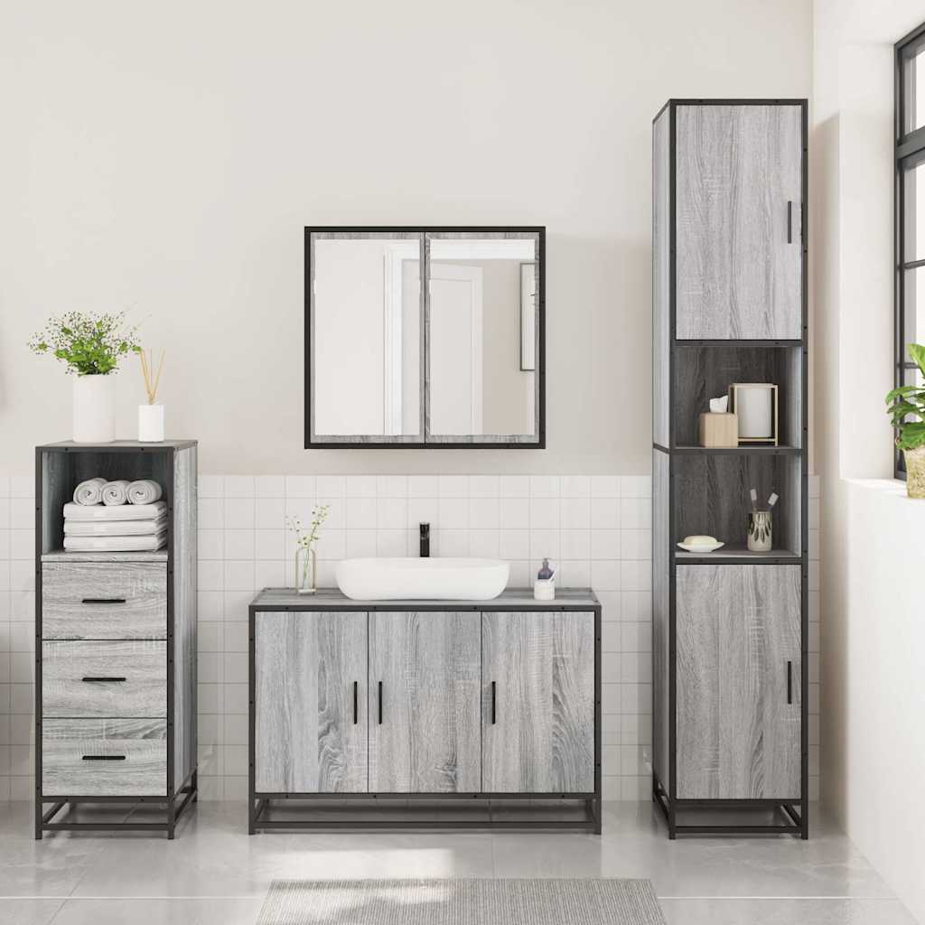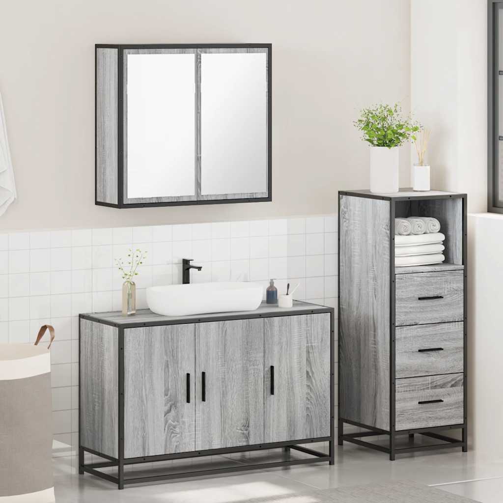 Set mobilier de baie, 3 piese, gri sonoma, lemn prelucrat GartenMobel Dekor