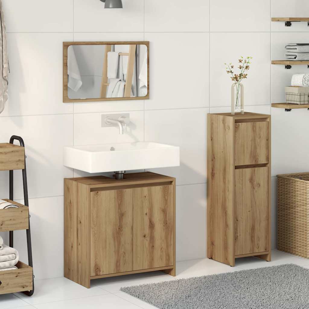 Set mobilier de baie, 3 piese, stejar artizanal, lemn prelucrat GartenMobel Dekor