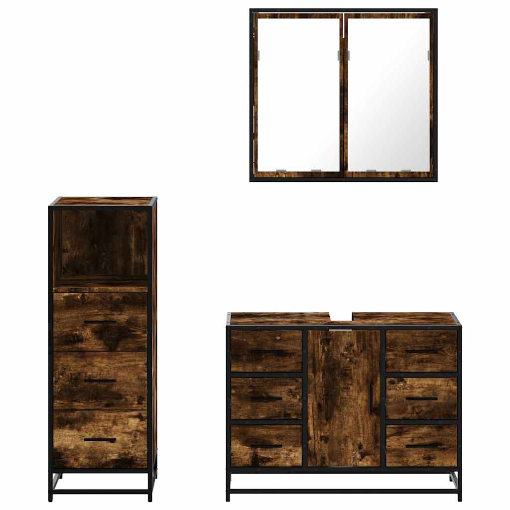 Set mobilier de baie, 3 piese, stejar fumuriu, lemn prelucrat GartenMobel Dekor