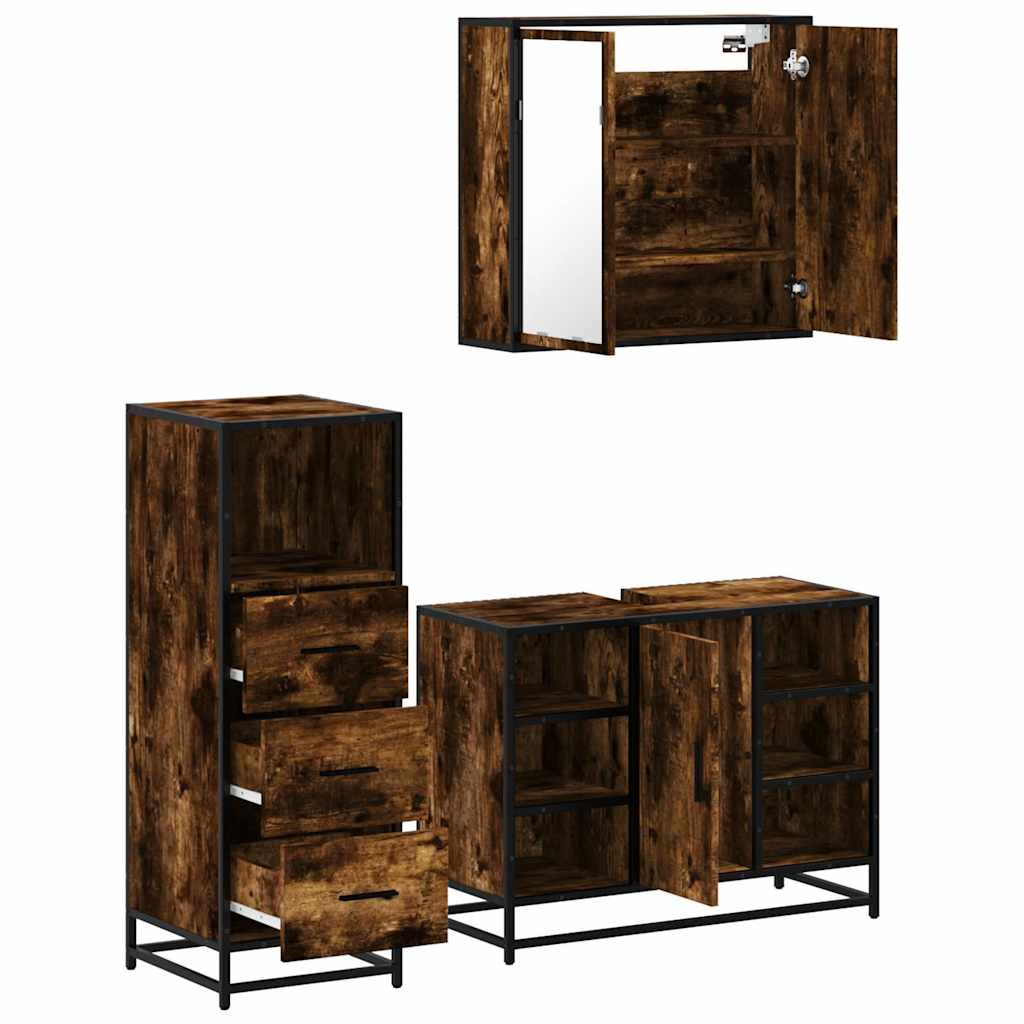 Set mobilier de baie, 3 piese, stejar fumuriu, lemn prelucrat GartenMobel Dekor