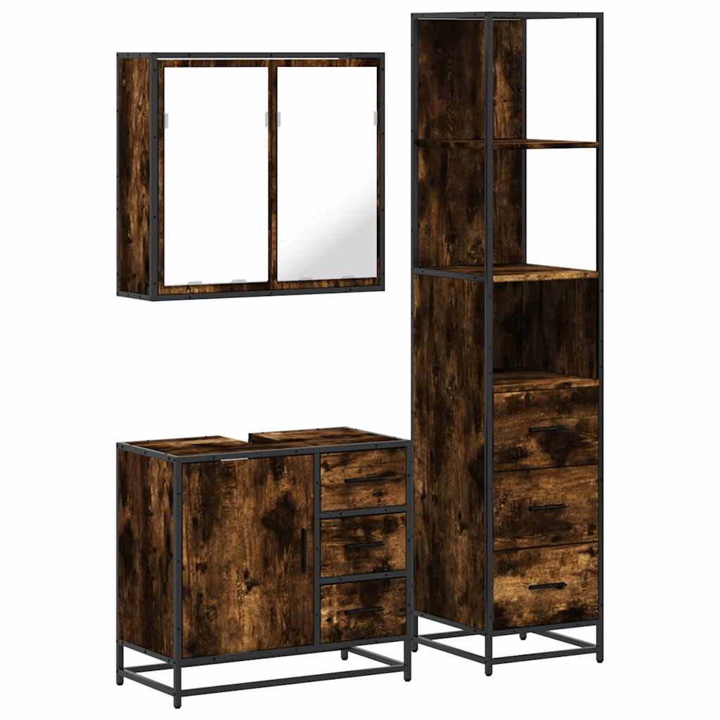 Set mobilier de baie, 3 piese, stejar fumuriu, lemn prelucrat GartenMobel Dekor