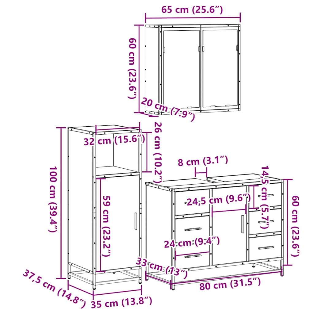 Set mobilier de baie, 3 piese, stejar maro, lemn prelucrat GartenMobel Dekor