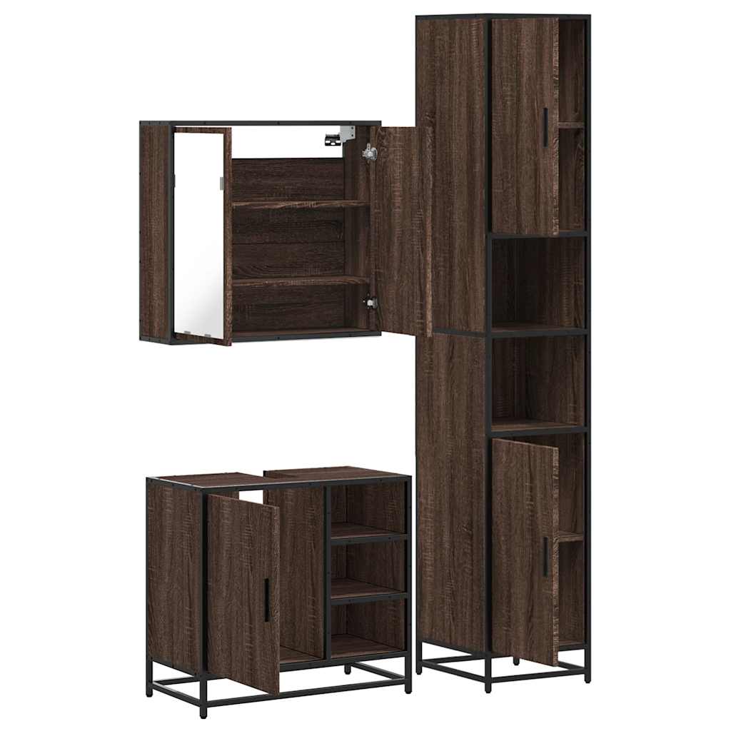 Set mobilier de baie, 3 piese, stejar maro, lemn prelucrat GartenMobel Dekor